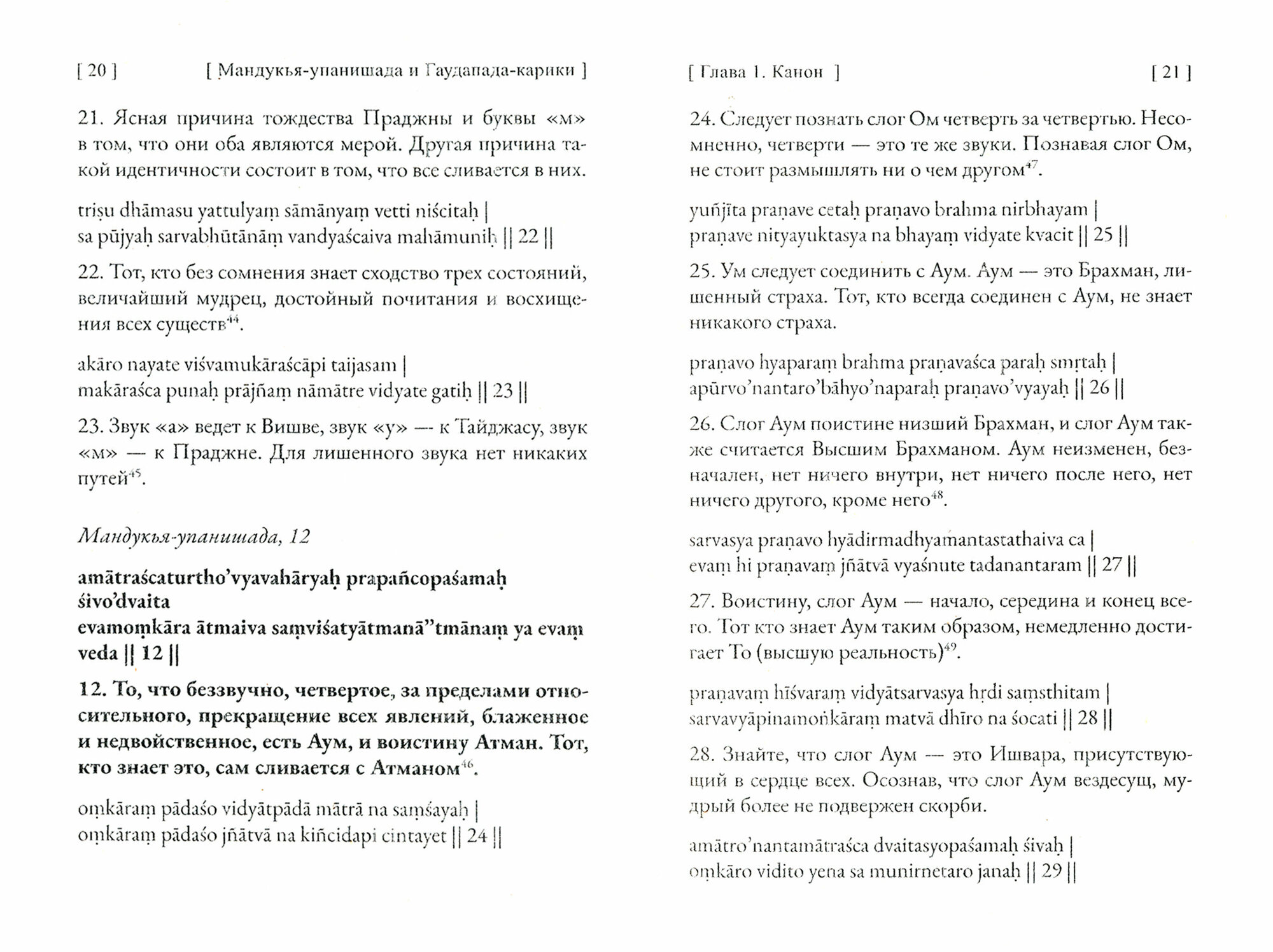 Комментарии Гаудапады к Мандукья-упанишаде — самое раннее систематическое изложение адвайта-веданты. Гаудапада анализирует основные состояния сознания, рассматривает мир как симуляцию, постулирует доктрину нерождения (аджати-ваду) и иллюзорность креационистских концепций. Это произведение, традиционно считающееся основой философии недвойственности и ключевым текстом адвайты, особенно актуально в наше время, когда формируются новые подходы к пониманию реальности и сознания. Данное издание содержит транслитерацию санскритского текста и примечания, основанные на комментариях Шанкары к трактату Гаудапады.