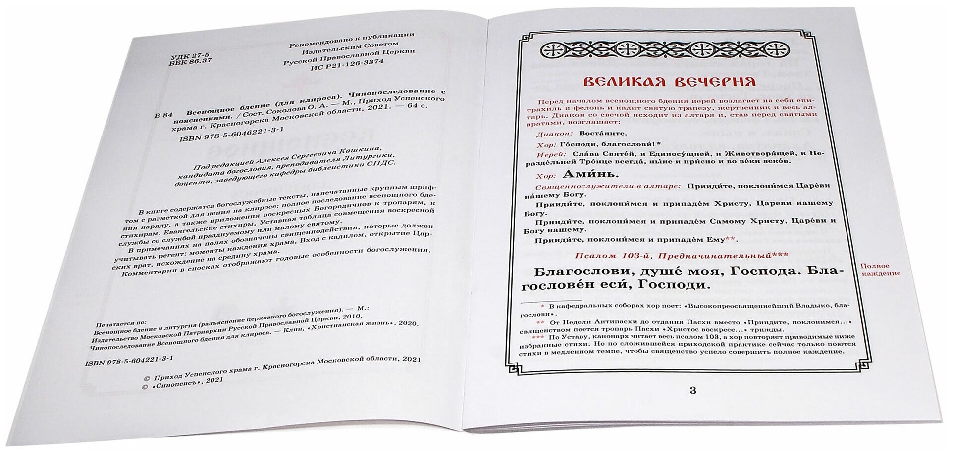 Всенощное бдение для клироса. Чиноп. с пояснениями (Соколова Ольга Александровна); Синопсисъ, 2021