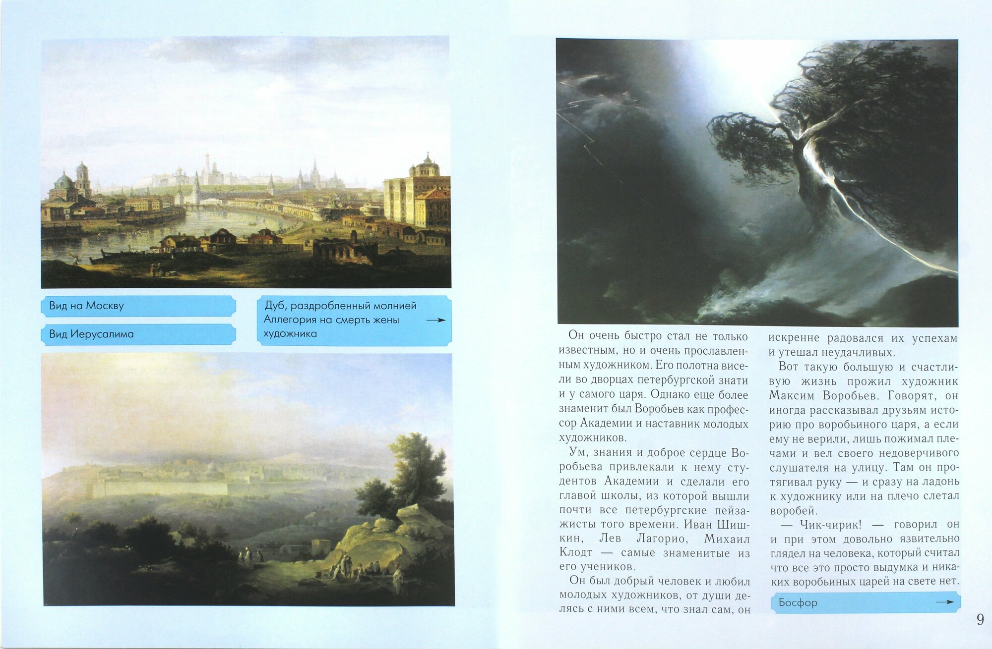Очень нравится качество иллюстраций, настолько, что одну из них - "Аллея в Альбано" - даже повесила на стену. Только просмотрев книгу, уже не забудешь творчество Максима Никифоровича Воробьева и не спутаешь его картины с работами других мастеров. И это при невозможно низкой цене! Еще заказала для подарка.