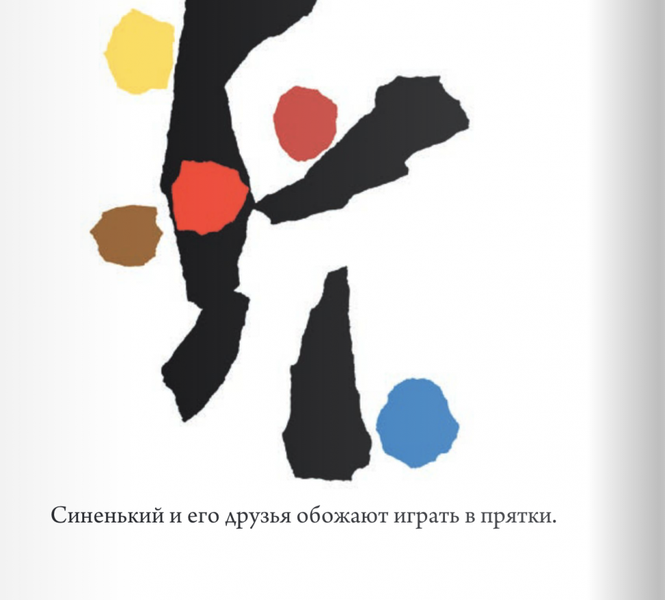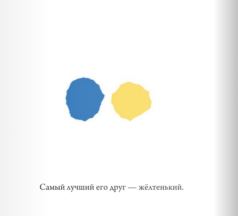 Книжка "Синенький и желтенький?" просто прелестна в своем абстрактном минимализме выражения идеи. Даже не зная истории ее создания, книжка меня восхитила!