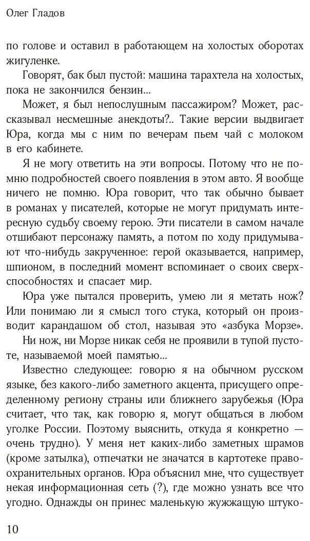 В далекой больнице за Полярным кругом лежит пациент с полной потерей памяти. Его нашли в брошенном посреди тундры автомобиле с проломленной головой, и с тех пор он — бессменный обитатель койки у окна в одной из палат. На него все махнули рукой — никто его не разыскивает, в базах правоохранительных органов нет его отпечатков и портрета. Но неожиданное самоубийство медсестры служит толчком к раскручиванию настоящего мистического детектива: побег из больницы; паром, петляющий по северной реке; странный попутчик на большом черном автомобиле; драка в Уральских горах; холод титановой пластины в затылке.