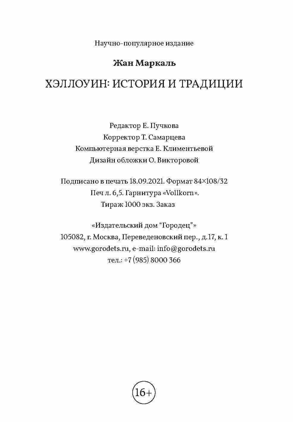 Хэллоуин история и традиции (Жан Маркаль); Издательский дом «Городец», 2020