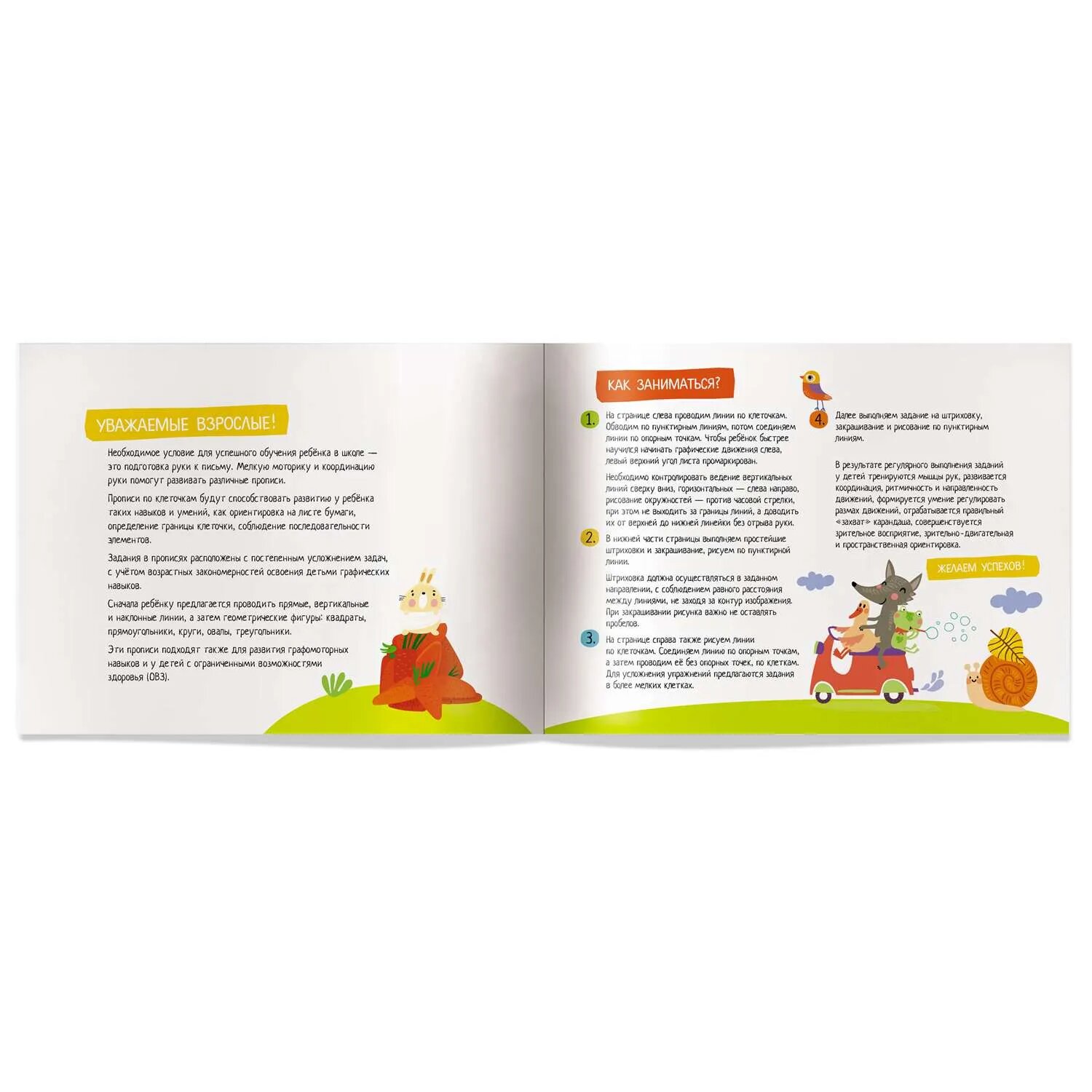 Прописи предназначены для формирования графических навыков у дошкольников. Ребёнок будет проводить различные линии, рисовать геометрические фигуры, выполнять простейшие штриховки и раскрашивания. Задания в прописях расположены по принципу постепенного усложнения. В результате регулярного выполнения упражнений у ребёнка тренируются мышцы рук, повышается уровень координационных способностей, ритмичности и направленности движений, формируется умение регулировать размах движений, отрабатывается правильный захват карандаша, развивается и совершенствуется зрительное восприятие, зрительно-двигательная и пространственная ориентировка.