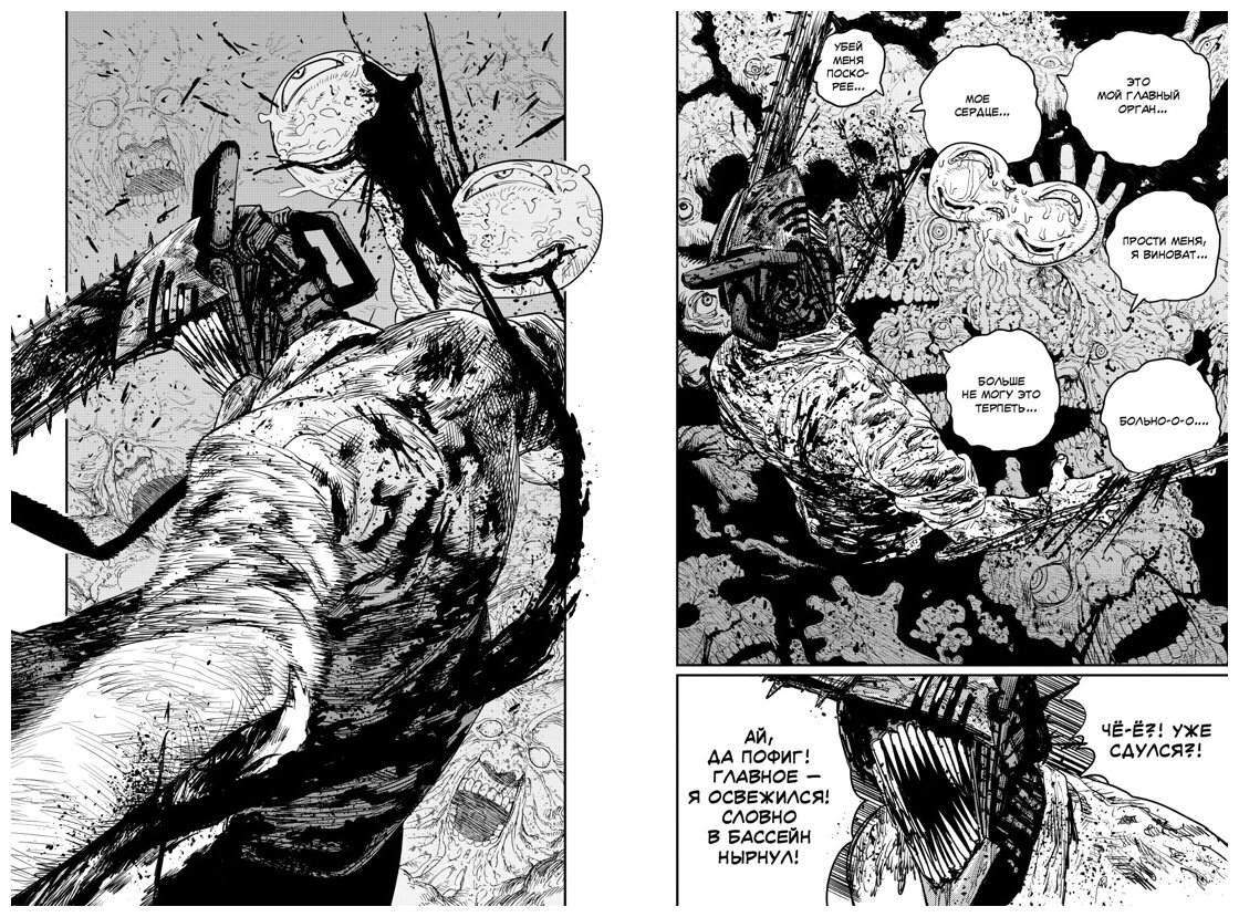 "...Безумие, трэш, угар, и содомия продолжаются!" - так Я могу охарактеризовать вторую книгу "Человека-Бензопилы", вобравшую в себя третий и четвёртый том оригинальной манги.
