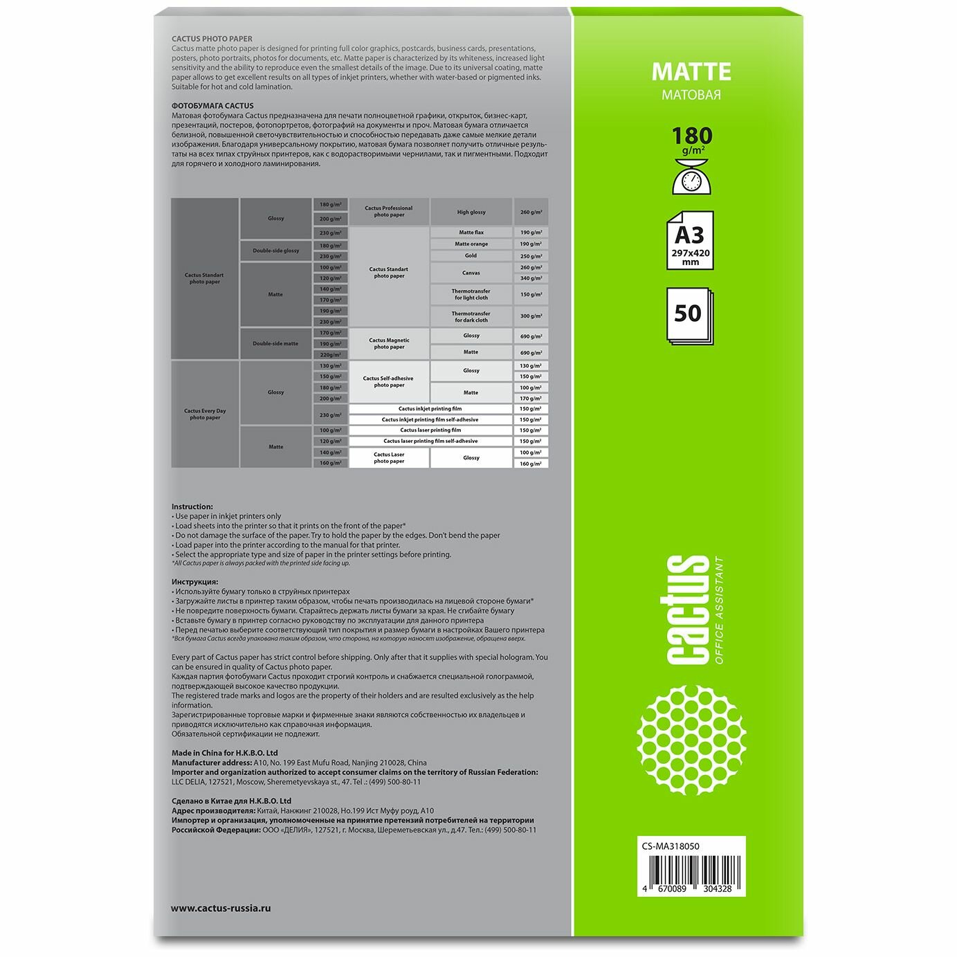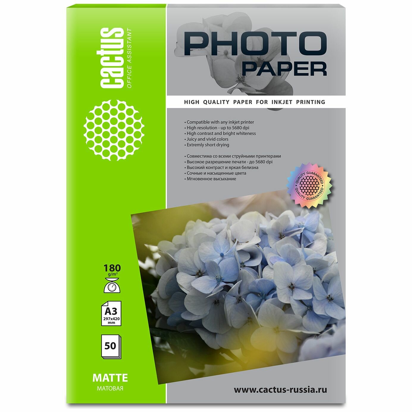 Фотобумага Cactus A3/180г/м2/50л./белый матовое для струйной печати CS-MA318050