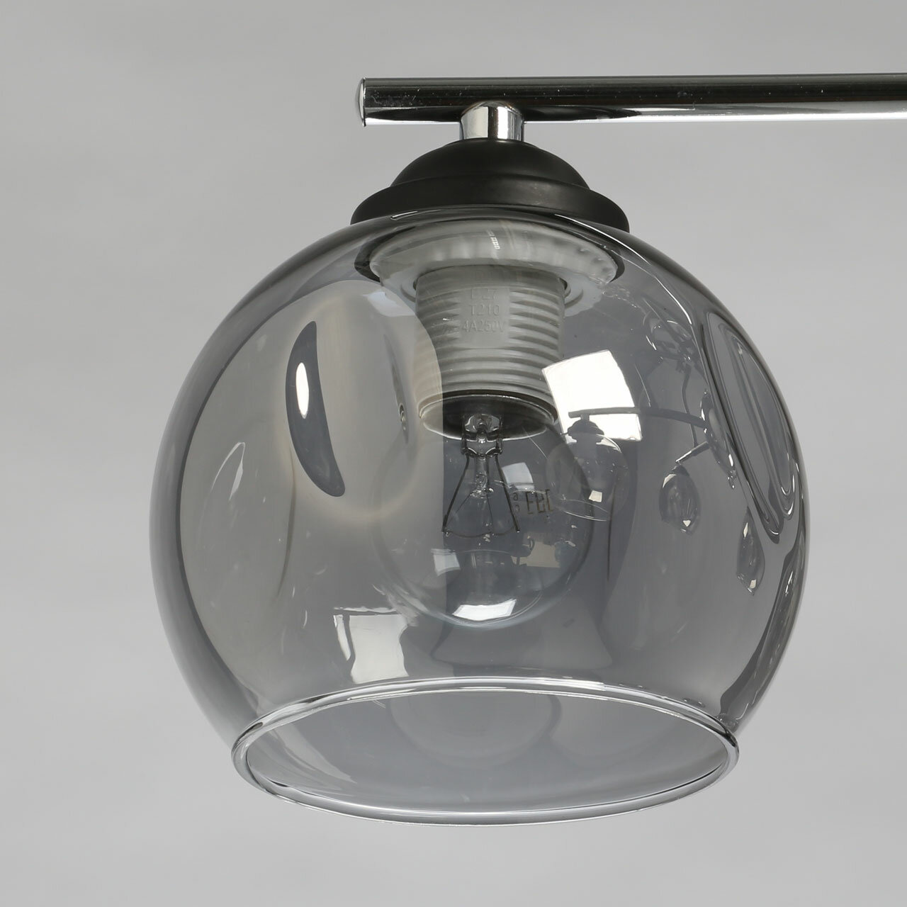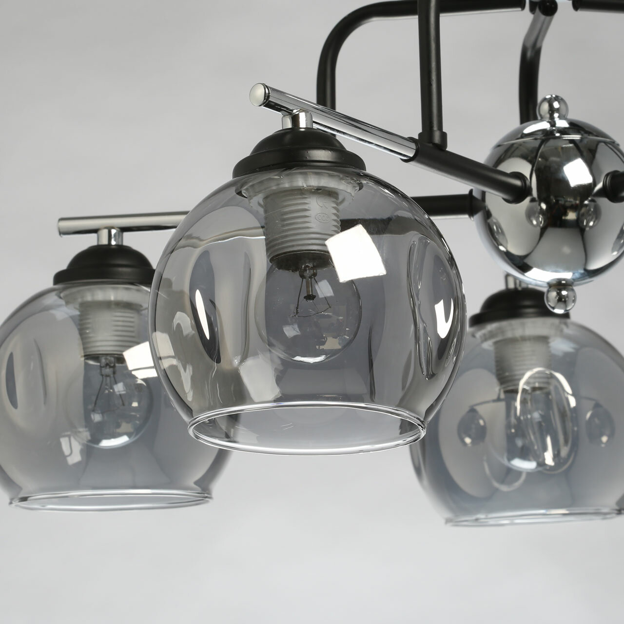 Актуальная комбинация металлов черного цвета и хрома. Стеклянные тонированные плафоны дымчатого цвета обеспечивают комфортный световой поток. Компактная высота модели оптимальна для стандартных потолков. Заменяемые источники света удобны в эксплуатации.