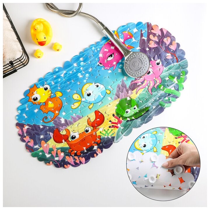 Коврик для ванны Доляна «Яркие рыбы» галька 35х68см Яркие рыбы галька