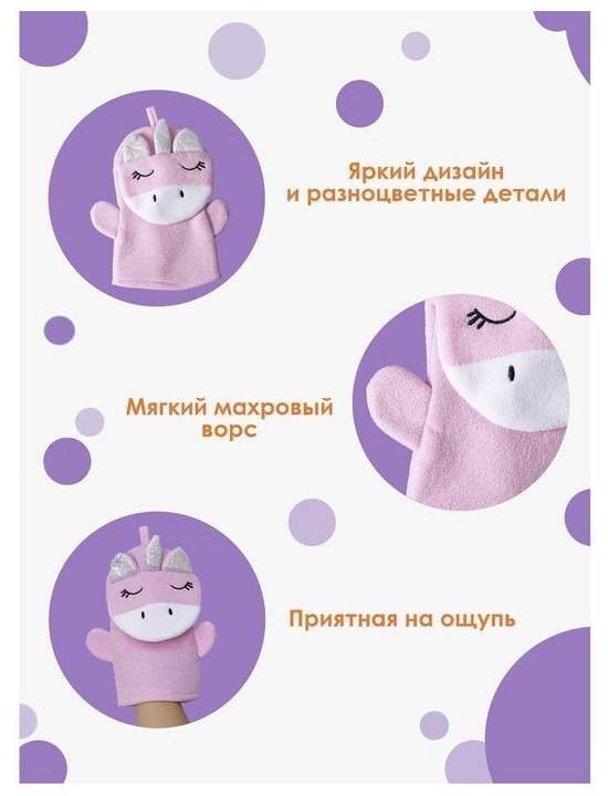 Мочалка-варежка детская Доляна "Единорожка" (П056-4442513)