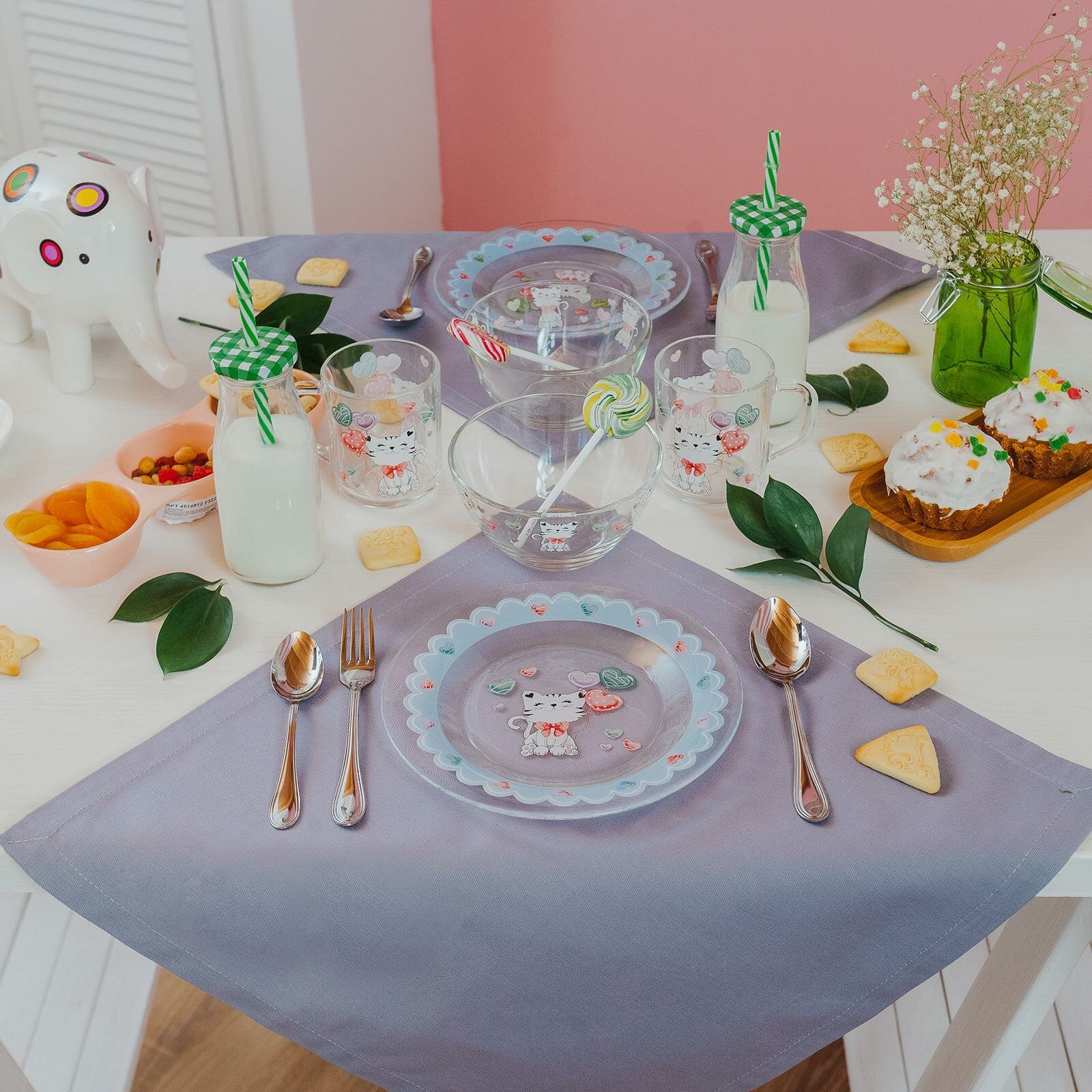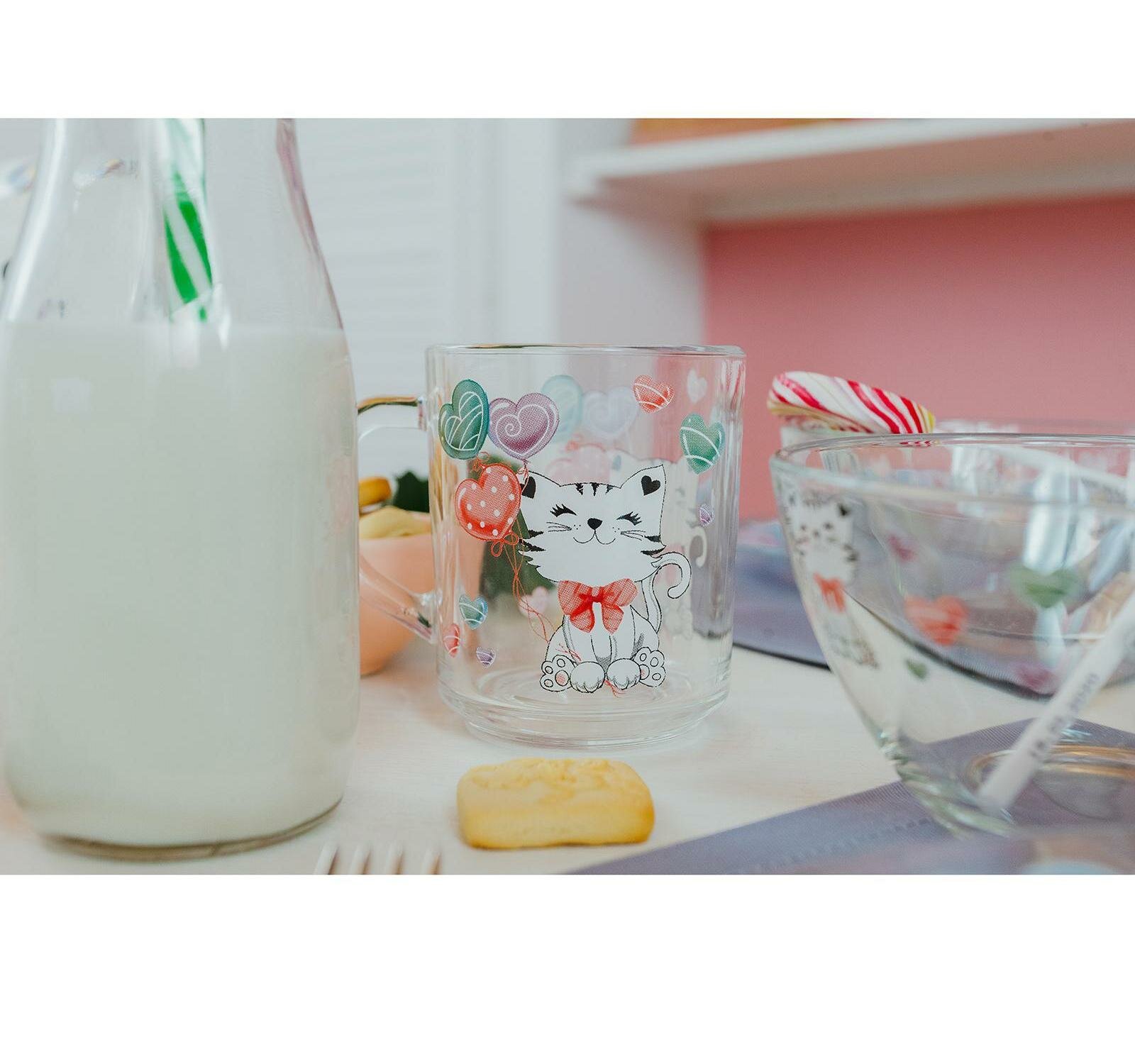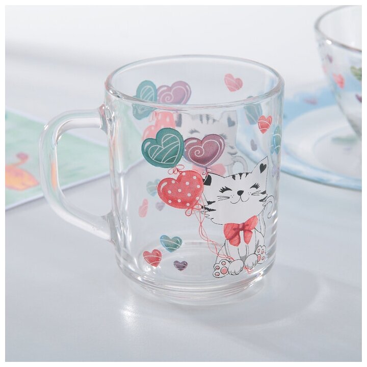 Набор детской посуды Доляна "Котёнок" 3 предмета: кружка 200мл миска 450мл тарелка 20см (П056-4970985)