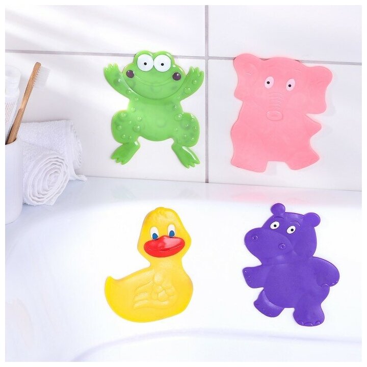 Набор мини-ковриков для ванны Доляна «Зоопарк» 11х14см 4шт. (П056-1022829)