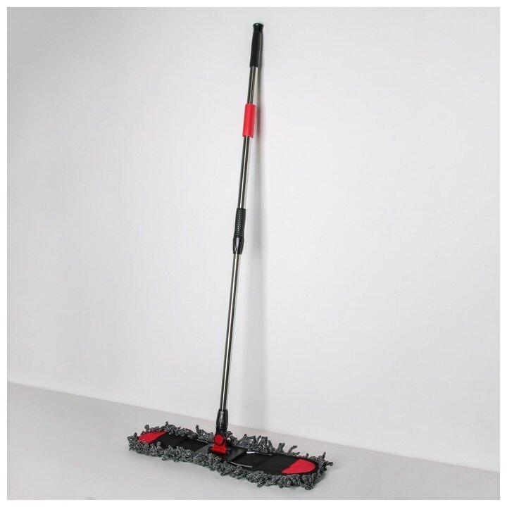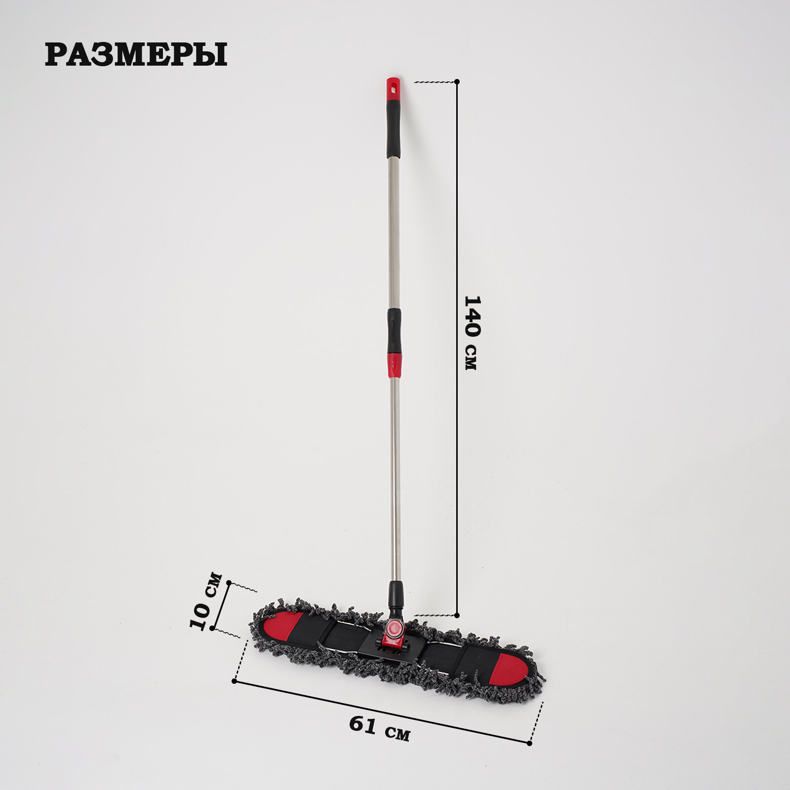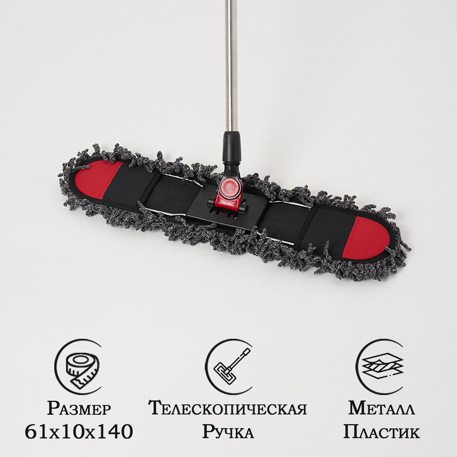 Швабра для мытья пола Доляна плоская стальная ручка 140см насадка из микрофибры 61х10см (П056-3092576)