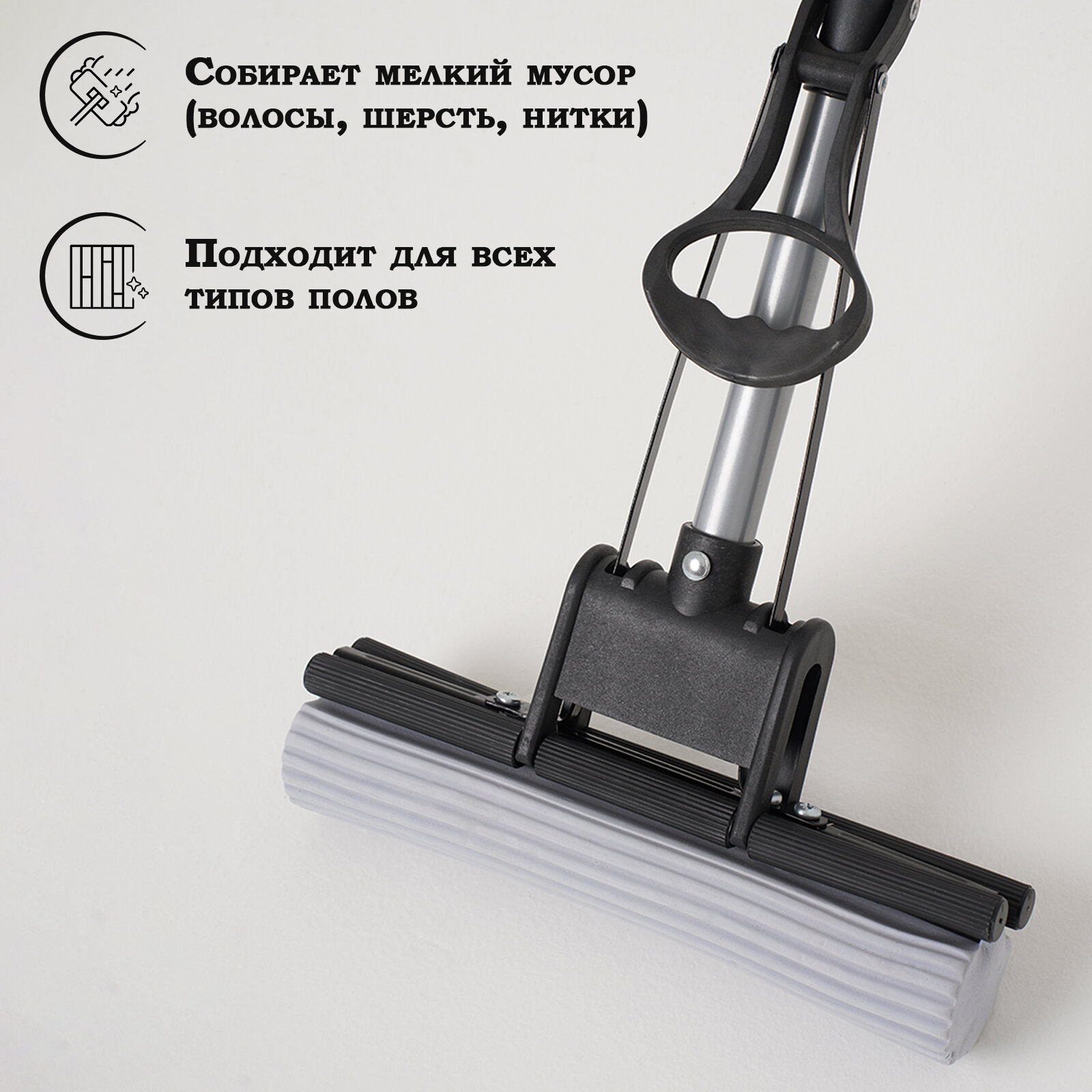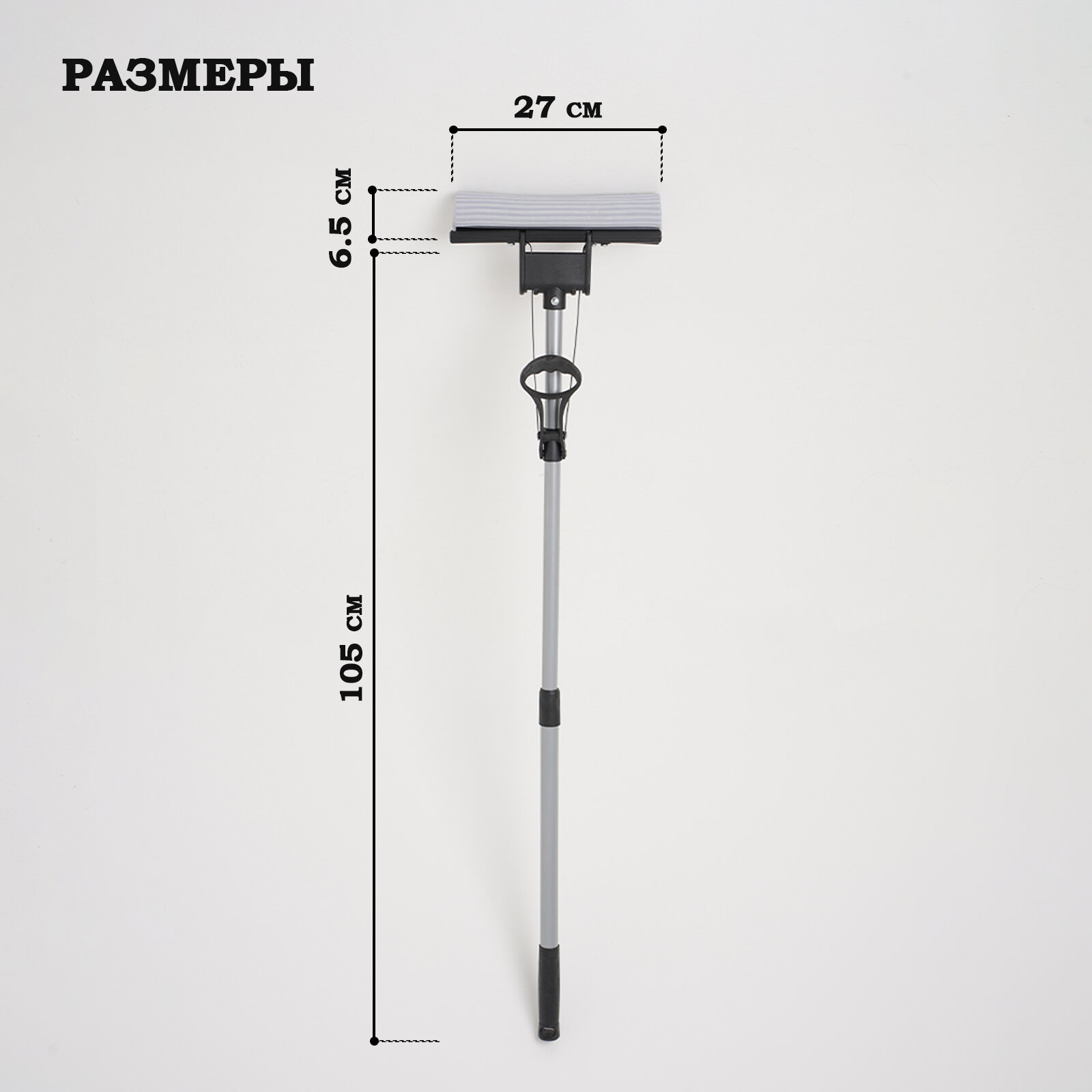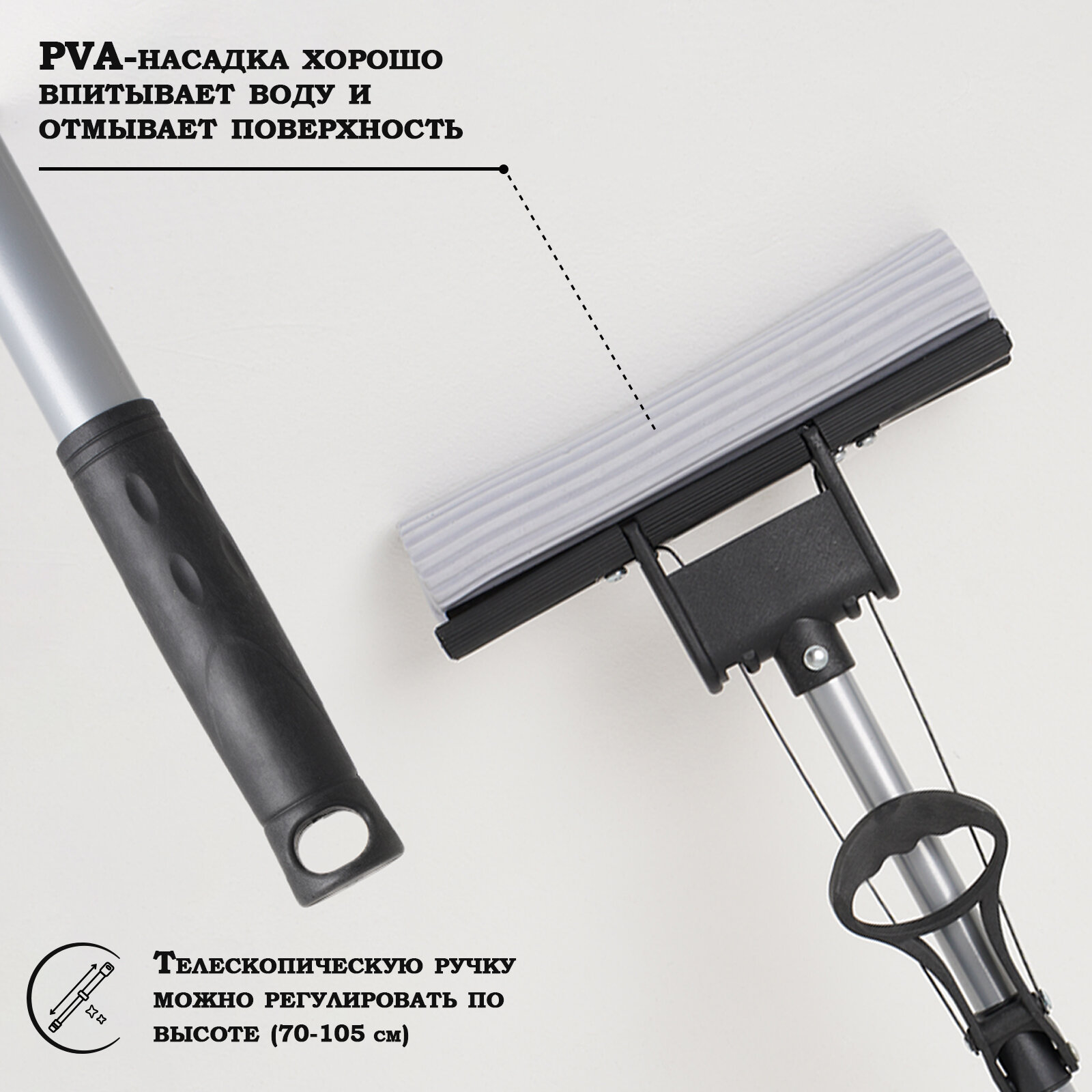 Швабра для мытья пола Доляна PVA с роликовым отжимом телескопическая ручка 70-105см насадка 27х6см чёрная 4363471