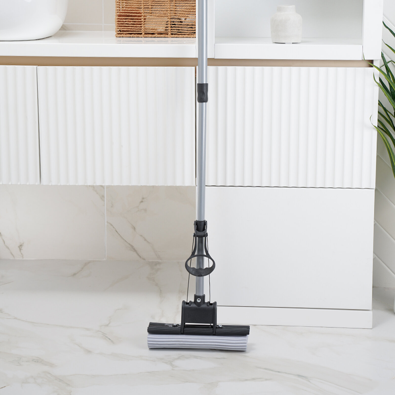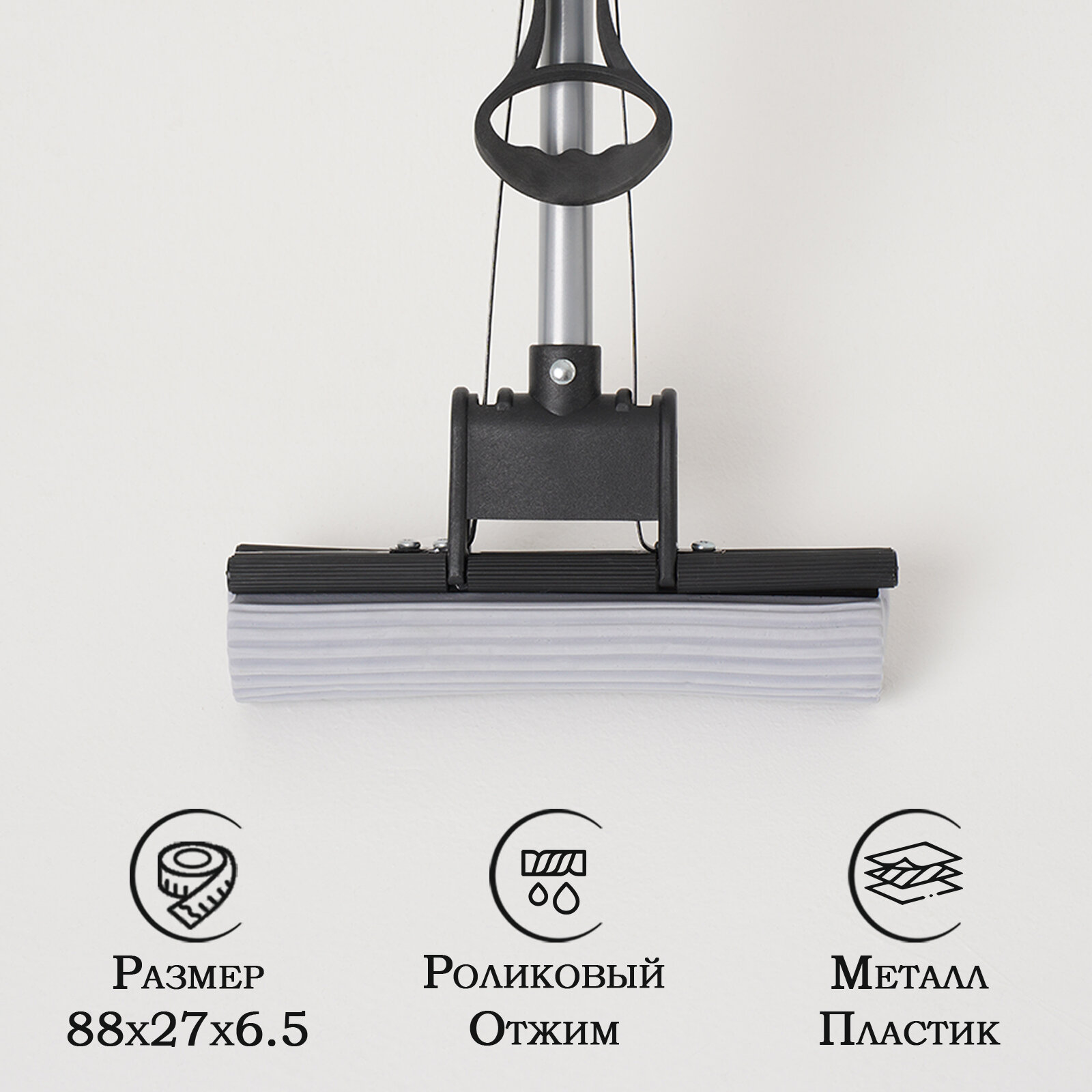 На сегодняшний день товар «Швабра для мытья пола Доляна PVA с роликовым отжимом телескопическая ручка 70-105см насадка 27х6см чёрная 4363471» можно купить с кешбеком в 1 магазине: Яндекс.Маркет