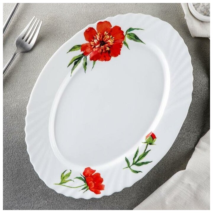 Блюдо овальное Доляна «Бархатная роза» 30х22см белое (П056-5256163)
