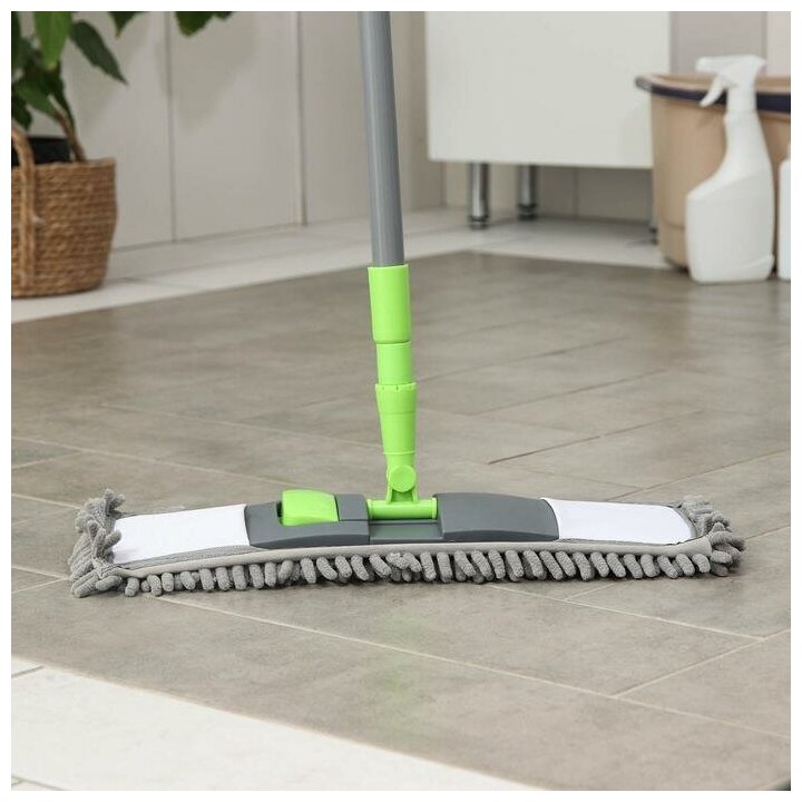 Преимущества швабры: телескопическую ручку можно регулировать по высоте, насадка из микрофибры хорошо впитывает воду и отмывает поверхность, подходит для всех типов полов;собирает мелкий мусор, такой как волосы, шерсть, нитки