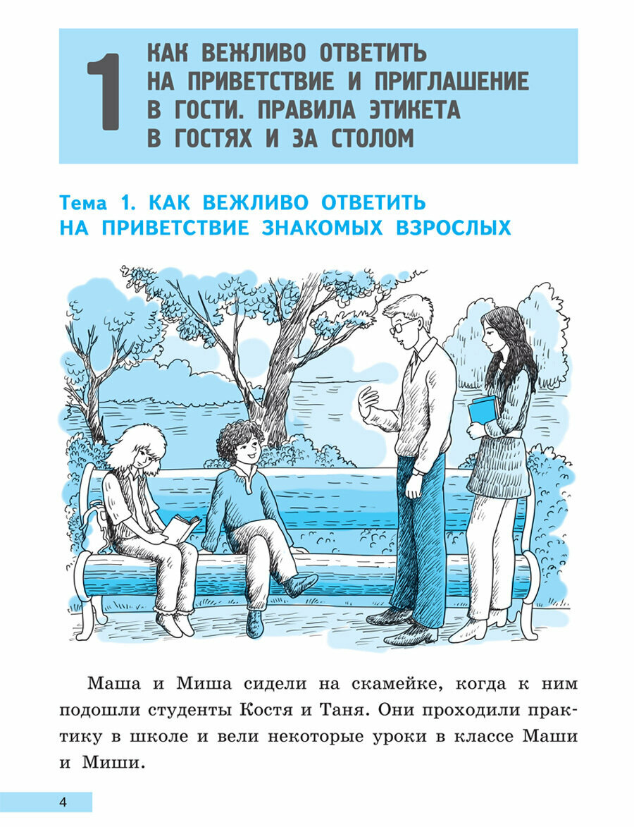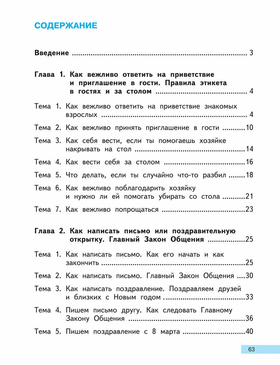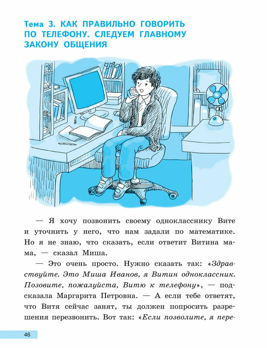 Пособие содержит систему заданий, которые помогут школьнику овладеть нормами речевого этикета в типизированных речевых ситуациях (разговор по телефону с ровесником и взрослым человеком; разговор с продавцом в магазине; обсуждение проблемы с одноклассниками и взрослыми, выход из конфликтных ситуаций и пр.). Отдельный раздел пособия научит школьников писать письма и поздравительные открытки своим друзьям, а также родственникам и знакомым взрослым с соблюдением норм речевого этикета.