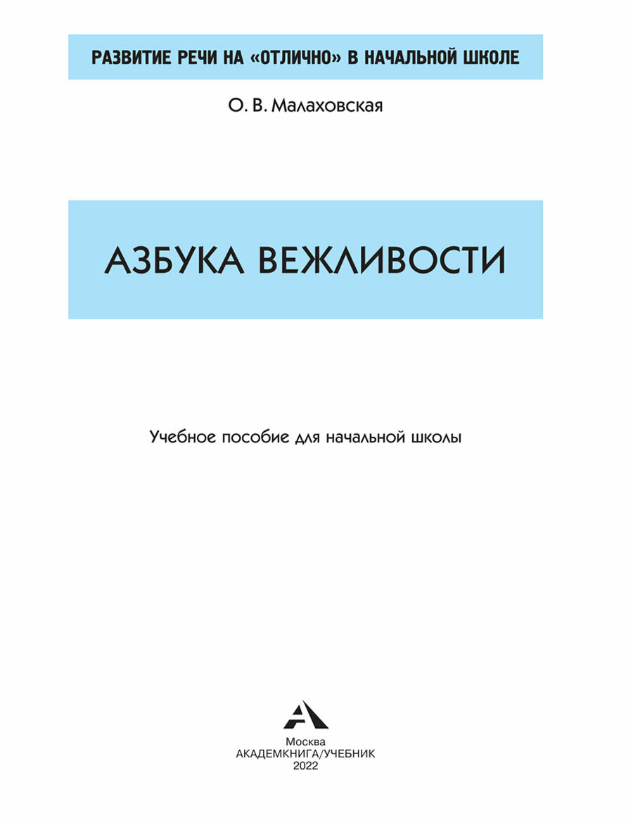 Развитие речи на "отлично". Азбука вежливости. Учебное пособие для начальной школы (Малаховская Ольга Валериевна); Академкнига/Учебник, 2022