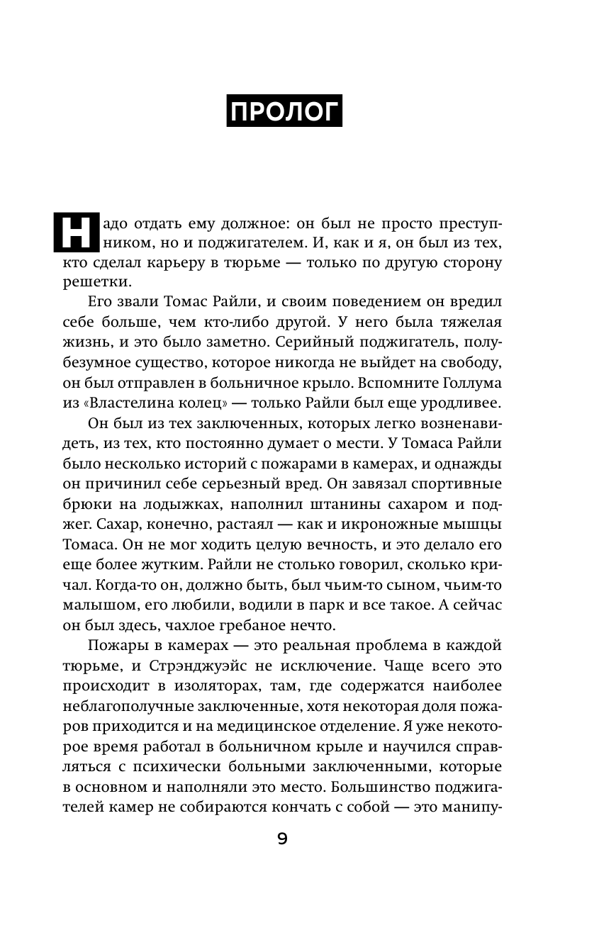 О профессии тюремного надзирателя, да и в общем о тюрьме, у нас не принято говорить, поэтому данная тема по умолчанию покрыта тайной. Из-за этого читать книгу было безумно интересно. Не скажу, что книга "легкая", но любители такого рода "ужастиков" прочитают быстро и взахлеб!