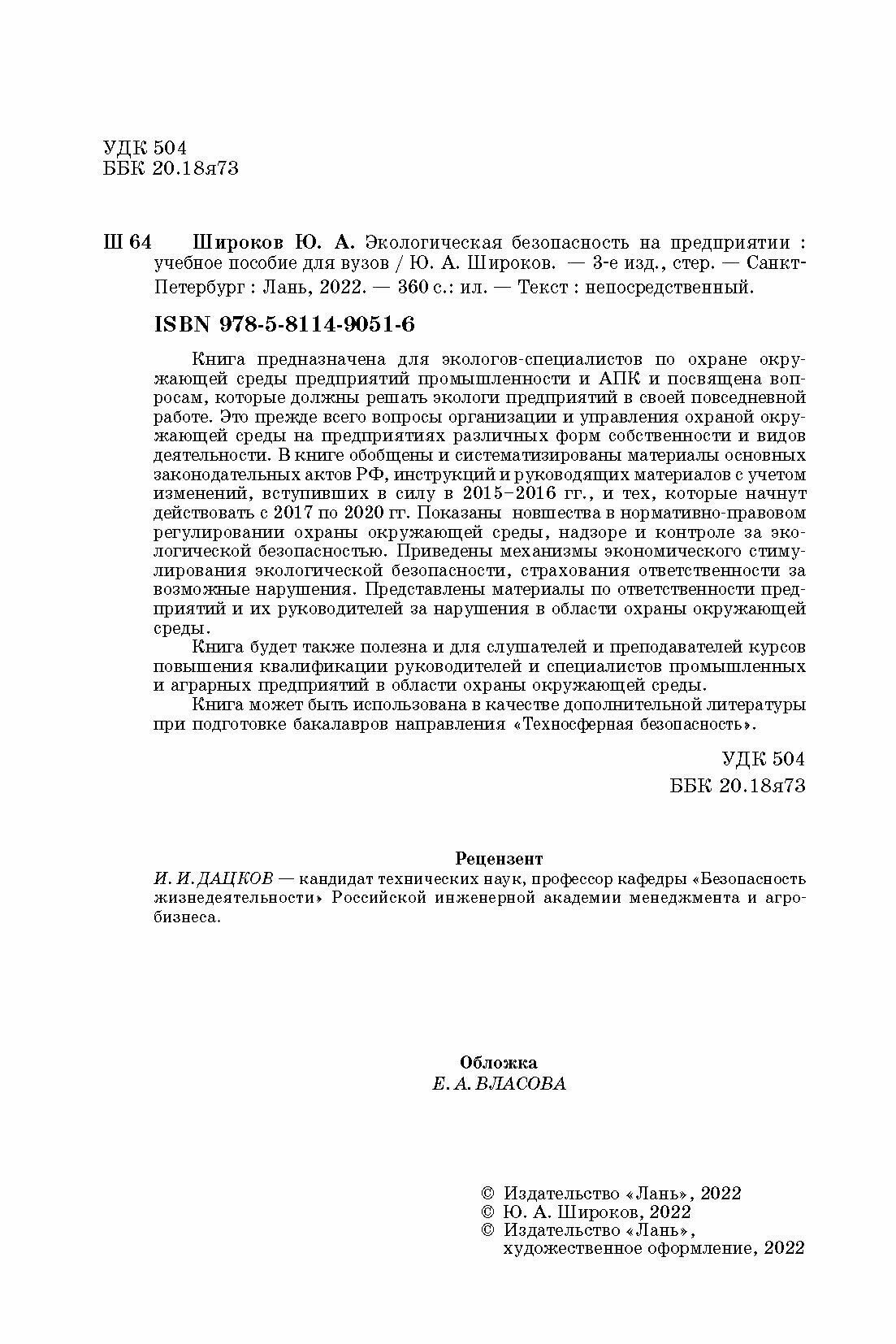 Экологическая безопасность на предприятии. Учебное пособие для вузов (Ю. А. Широков); Издательство ЛАНЬ, 2022
