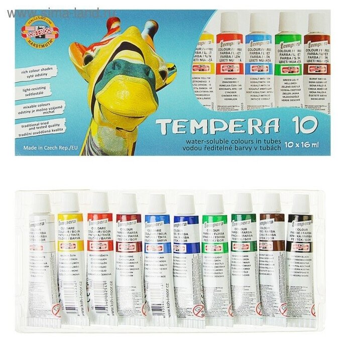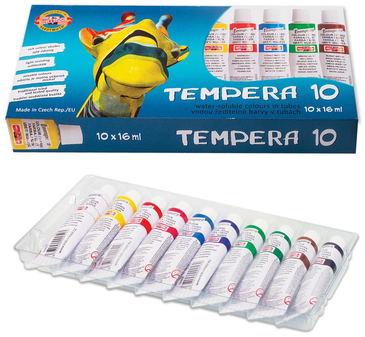 Набор темперных красок 6 цветов в тюбиках по 16 мл. Темперные краски Koh-I-Noor имеют яркие насыщенные пигменты, хорошо смешиваются между собой, быстро сохнут, после высыхания их снова можно разбавить водой.