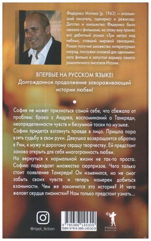 София не может признаться самой себе, что сбежала от проблем: брака с Андреа, воспоминаний о Танкерди, неопределенности чувств и безумной тоски по музыке. Софии придется взглянуть правде в лицо. Пришла пора взять судьбу в свои руки. Девушка возвращается обратно в Рим, к мужу и дорогому сердцу творчеству. Ей предстоит заново открыть для себя многогранность любви. Но вернуться к нормальной жизни не так-то просто. Софию поджидает множество сюрпризов. Чего только стоит появление Танкреди! Он изменился, но не смог забыть своих чувств и теперь намерен добиться взаимности. Чем же закончится эта история? И чего желает сердце пианистки? Нам только предстоит узнать.