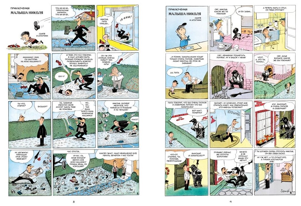 Отличное издание отличного комикса. Все истории, пропитанные французским юмором, где-то экспрессивным, где-то интеллектуально интеллигентным, будут интересны не только детям, но и взрослым. Качество книги на высоте, цвета яркие, текст хорошо читаемый. Формат книги большой, приятно держать в руках. В книге собраны именно короткие комиксы, на одну страницу. Но за лаконичностью повествования зачастую скрыты темы для больших раздумий. В конце книги дана пара коротких рассказов - это уже следующий формат историй, которые были оформлены в виде книг с чёрно-белыми иллюстрациями. Смело могу рекомендовать книгу для любителей детских комиксов!