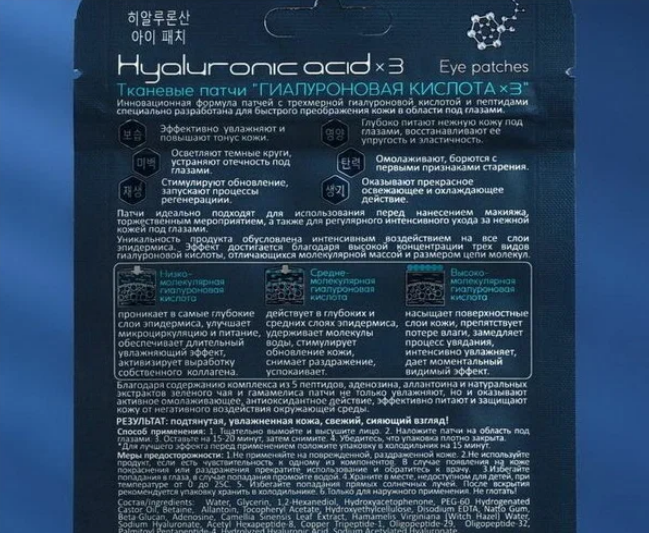 Инновационная формула патчей с трехмерной гиалуроновой кислотой и пептидами специально разработана для быстрого преображения кожи в области под глазами.