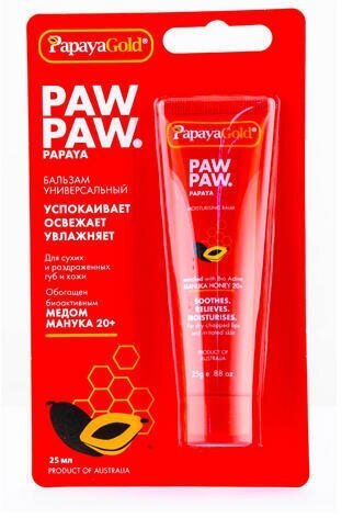 Универсальный австралийский бальзам Papaya Gold великолепно увлажняет кожу губ, лица и тела, избавляет ее от сухости, снимает раздражение, и даже обладает лечебным эффектом. Идеально подходит для питания сухих, потрескавшихся губ, отлично увлажняет колени, локти, кутикулу. В основе состава Papaya Gold экстракт папайи и мед манука.