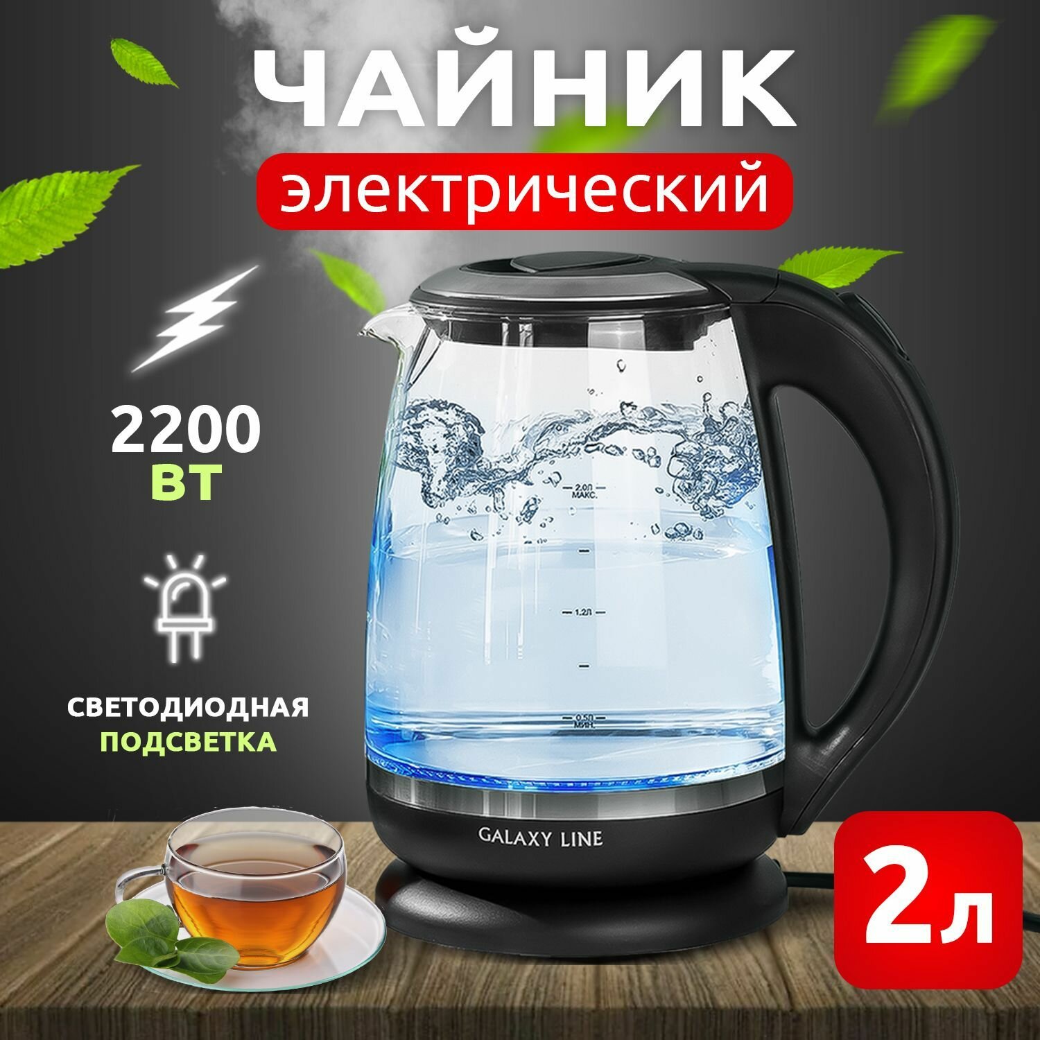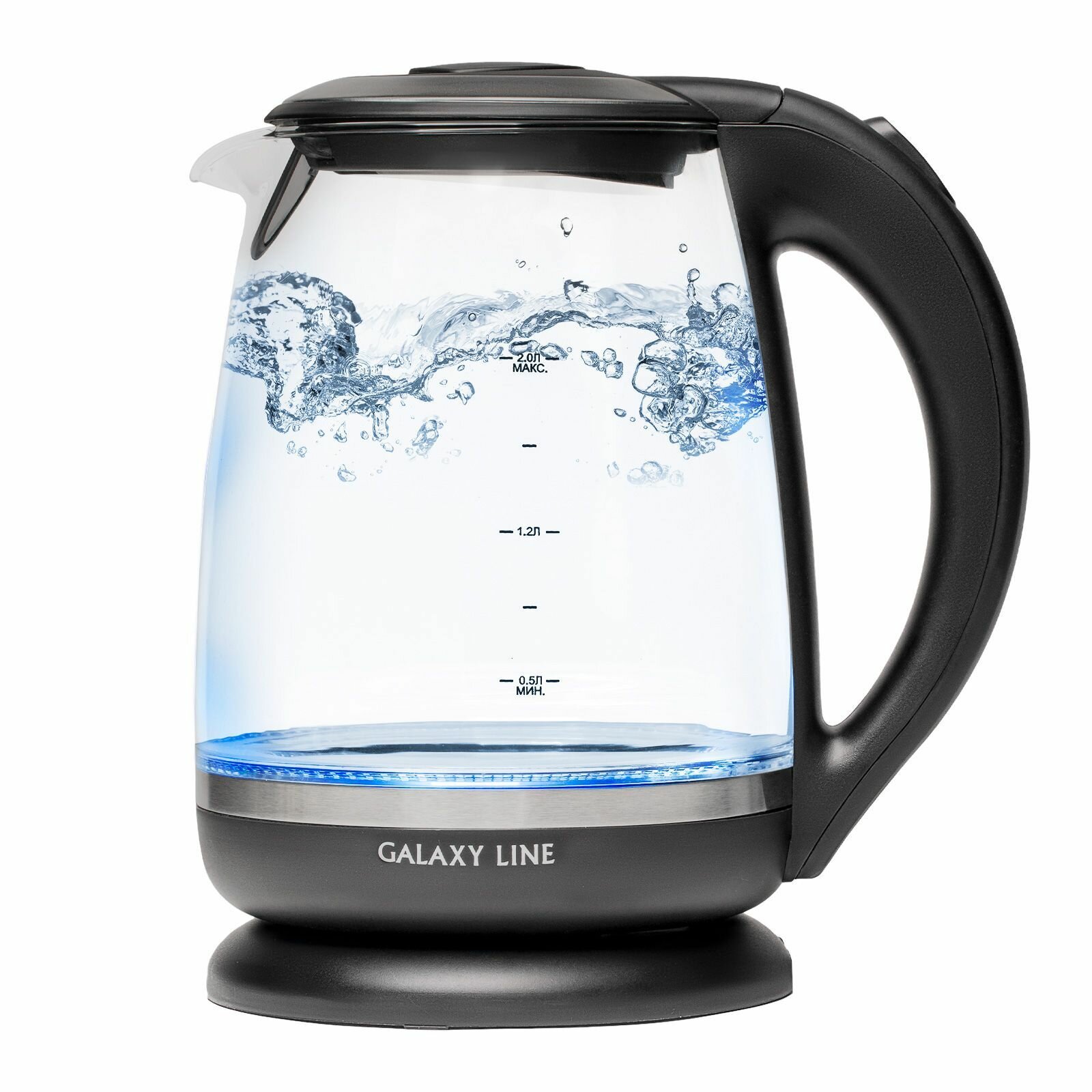 Чайник электрический GALAXY LINE GL0559 имеет элегантный дизайн, корпус из термостойкого стекла и светодиодную подсветку.