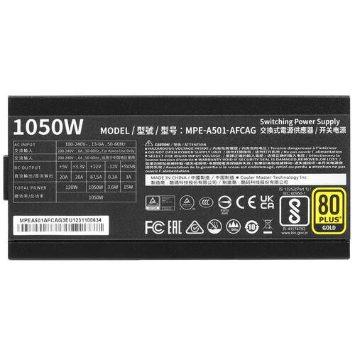 Блок питания ATX Cooler Master MPE-C501-AFCAG-EU 1250W 80 PLUS Gold active PFC 140mm fan full modular MWE Gold 1250 V2