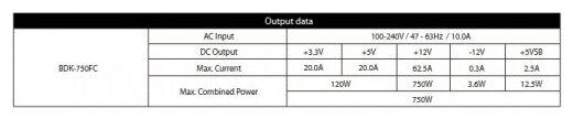 | Мощность по каналам, суммарно по (+12V1, 12V2, ...), Вт | 750 |