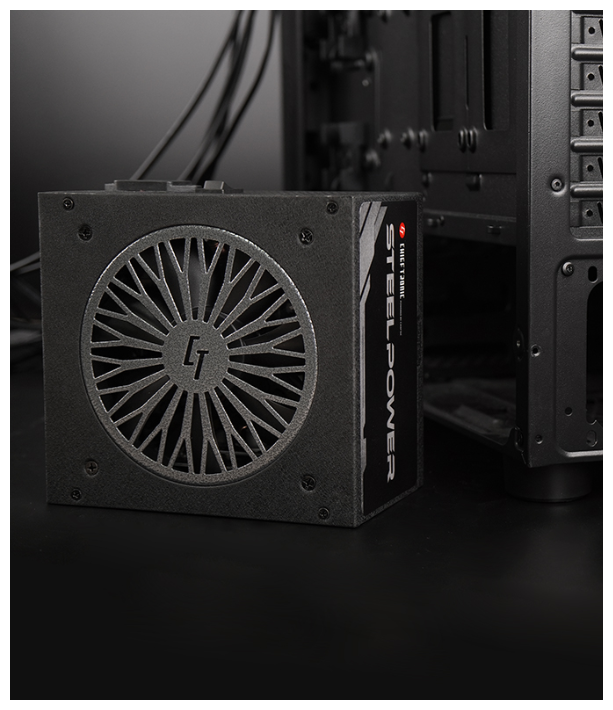 Блок базируется на CWT-платформе. Это означает, что он имеет активный корректор коэффициента мощности, силовой резонансный преобразователь и синхронный выпрямитель по линии 12 В. За охлаждение внутренних компонентов блока питания Chieftec SteelPower [-FOB] отвечает 12-сантиметровый вентилятор с двухконтактным подключением. Он способен разгоняться с 750 до 2200 об/мин.