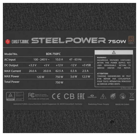 | Мощность | 750 Вт, 80 PLUS BRONZE, активный PFC |