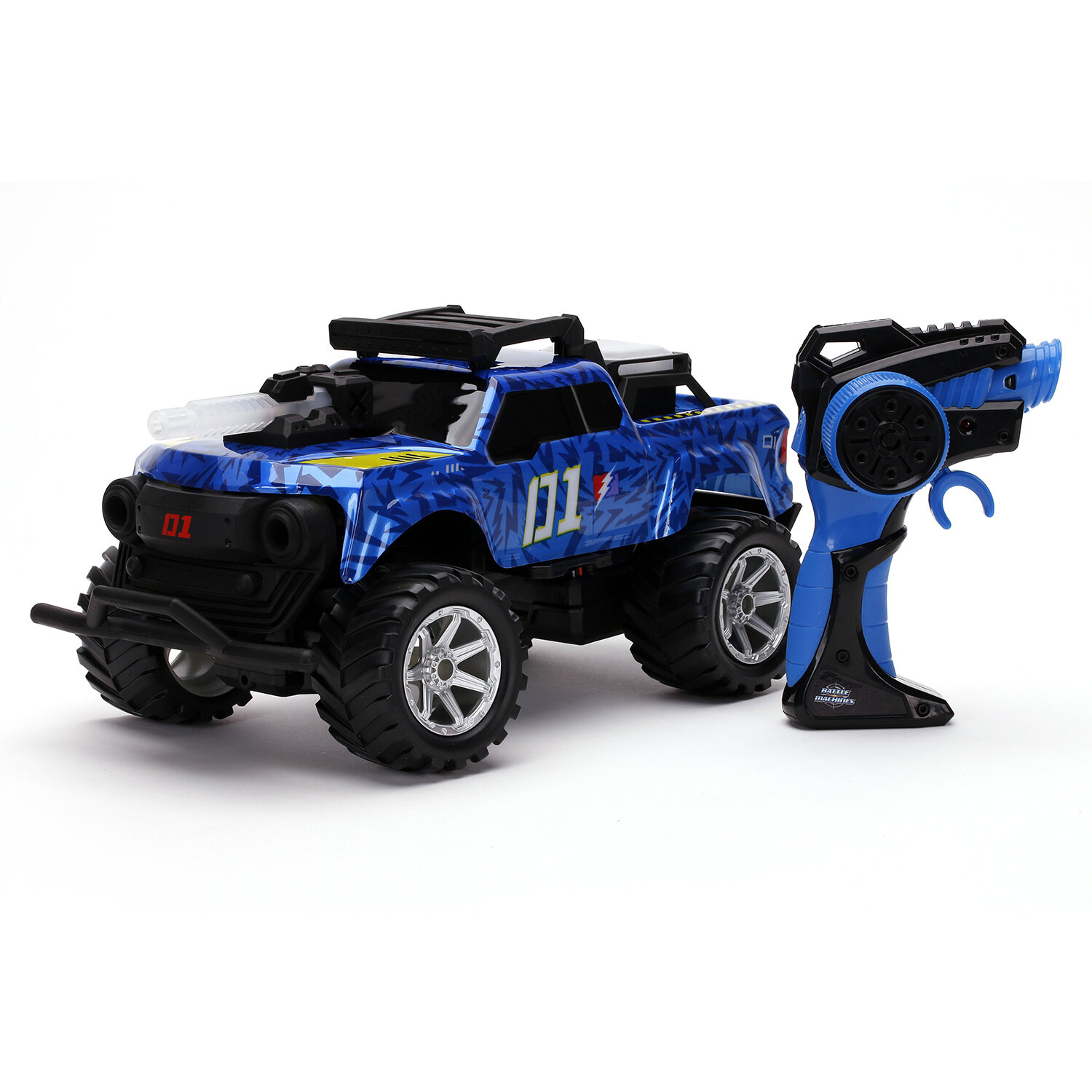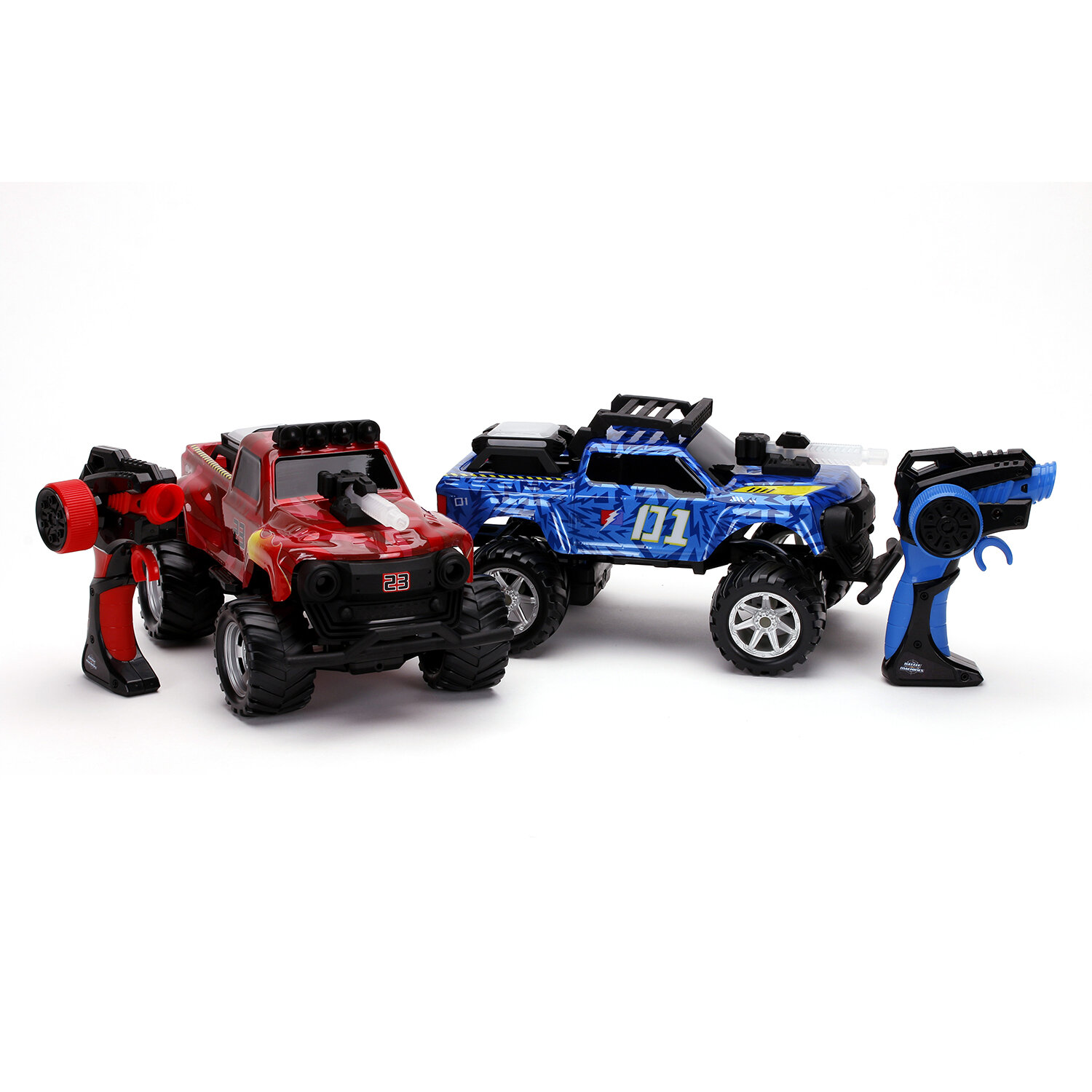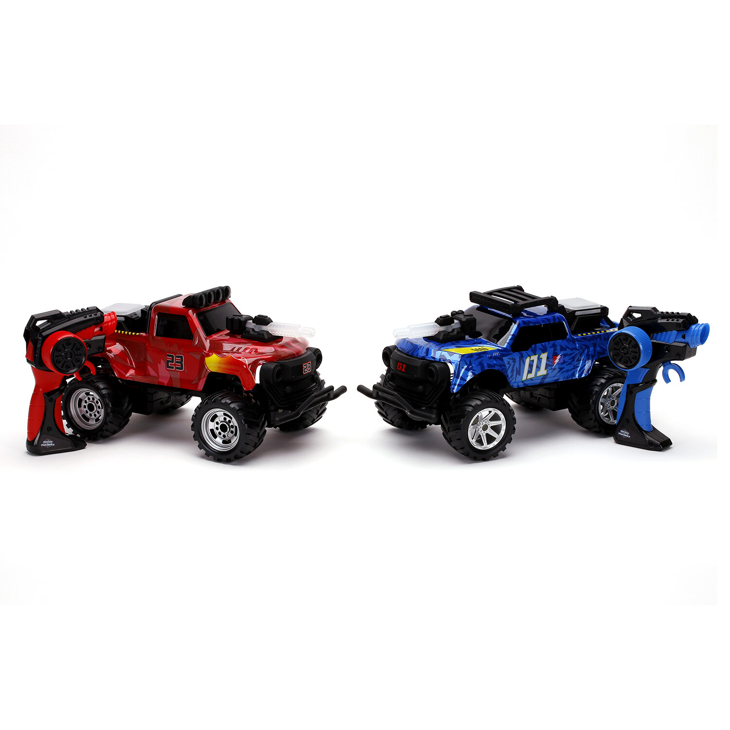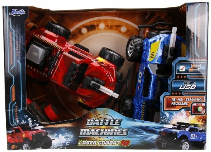 Jada Toys Р/У Battle Machines Trucks 1:16 R/C Twin Pack (SDG No. 251109005) 31697 NEO 31698 Iron Bea - это набор из двух моделей машин в масштабе 1:16. Характеристики: 2,4 ГГц Полнофункциональный ПДУ Контроллер пистолетной рукоятки Перезаряжаемый литий-ионный аккумулятор через USB Можно играть вдвоем и стрелять Играйте на 16 транспортных средствах с большим радиусом действия (100 футов) Возраст 6+ Масштаб: 1:16 Упаковка: картонный бокс Бренд: Jada Toys В комплекте: 2 грузовика На старт, внимание, марш! Приготовьтесь к Battle Machines R/C, самому инновационному и интерактивному радиоуправлению в своем классе с множеством игровых шаблонов, включая лазерный боевой ярлык и технологию зарядки USB. Каждый игрок начинает с тремя жизнями, обозначенными зелеными, желтыми и красными световыми индикаторами на заднем датчике транспортного средства. Игрок, первым нанесший три удара, будет признан победителем. Нажмите кнопку заднего датчика на транспортном средстве, чтобы сбросить битву и посмотреть, сможете ли вы сохранить свой титул или будет коронован новый игрок. Пусть игра начнется! Синий и красный грузовики с подсветкой и пультами управления. Устройте свою эпичную гонку! Кузов каждого грузовика оснащен лазером с имитацией звука выстрела.