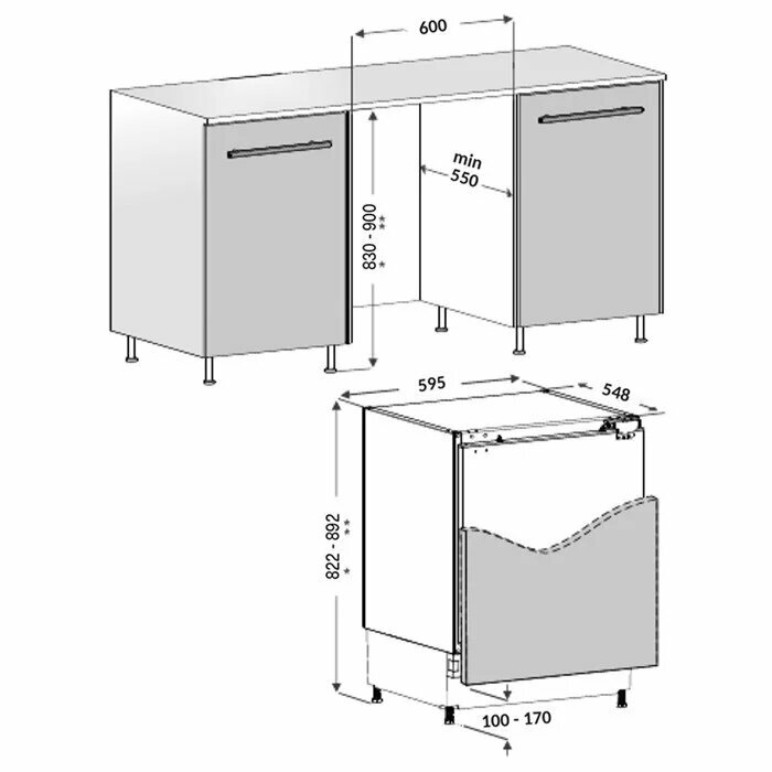 | Встраиваемая часть (В*Ш*Г), мм | 822-892*595*548 |