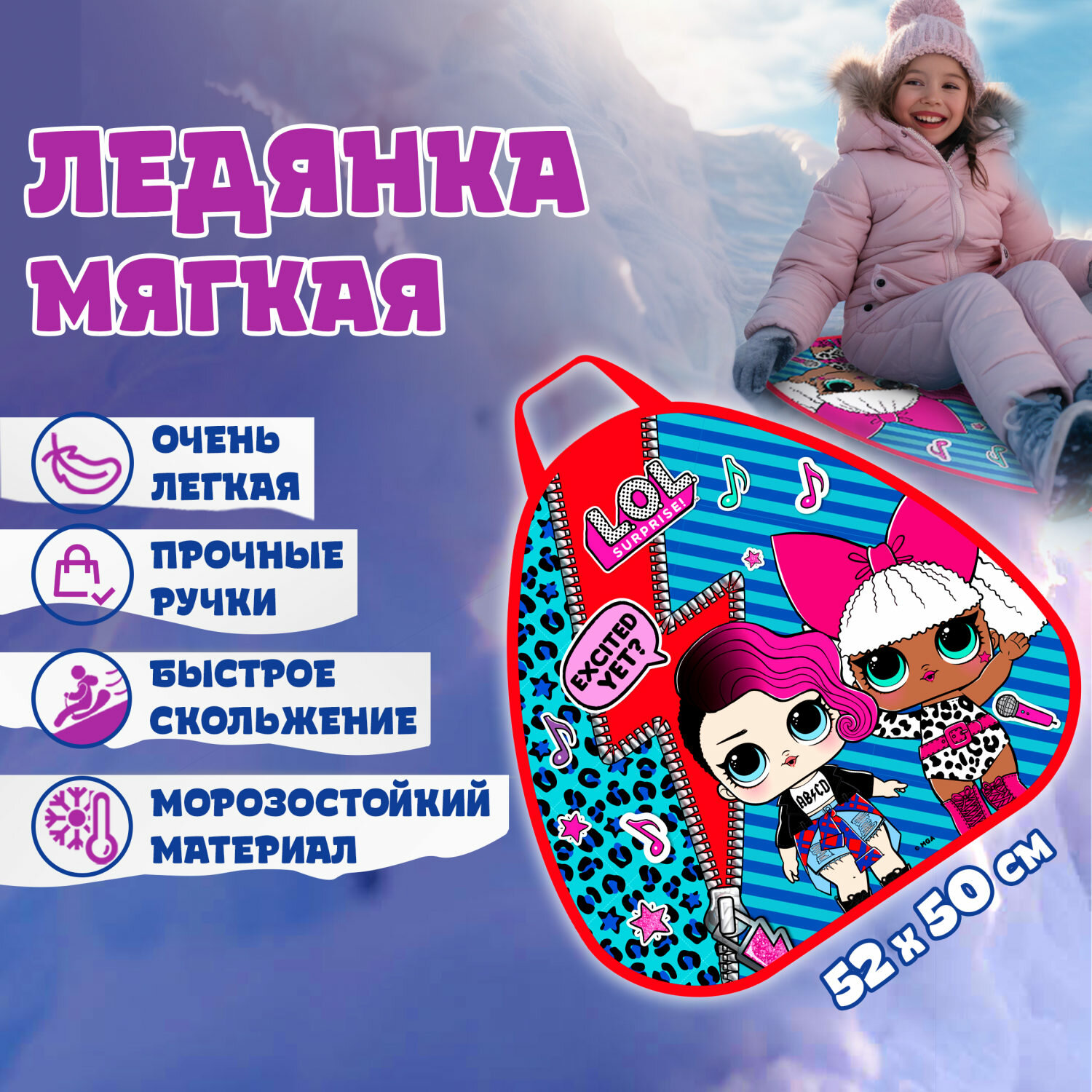 Изделие отличается легким весом, привлекательным дизайном, компактным исполнением и украшено ярким изображением любимых героев. Идеальное скольжение по снежной поверхности подарит детям массу незабываемых эмоций и разнообразит их досуг на свежем воздухе.