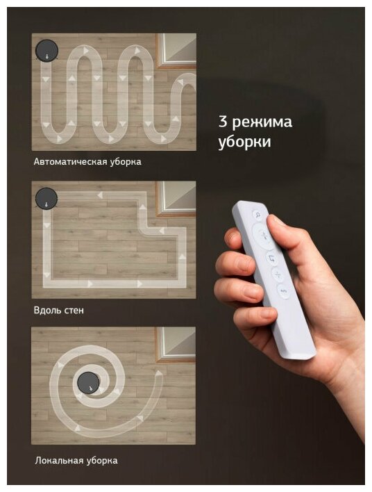 | Режимы уборки пылесоса-робота | автоматический, локальный , вдоль стен/ по периметру |