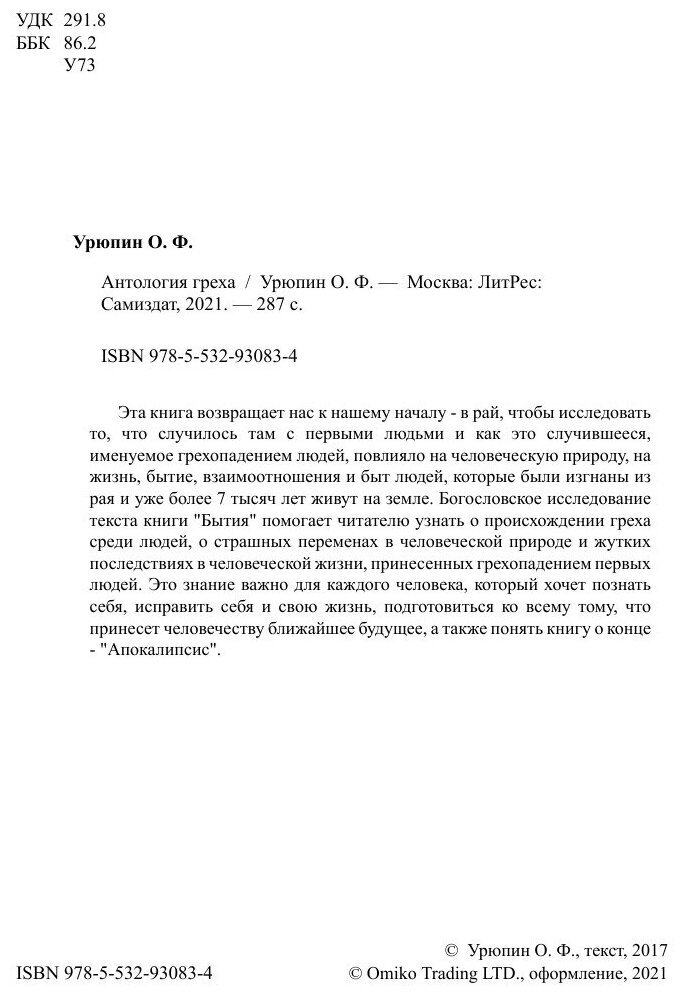 Книга: Антология греха (Олег Федорович Урюпин); Автор, 2017
