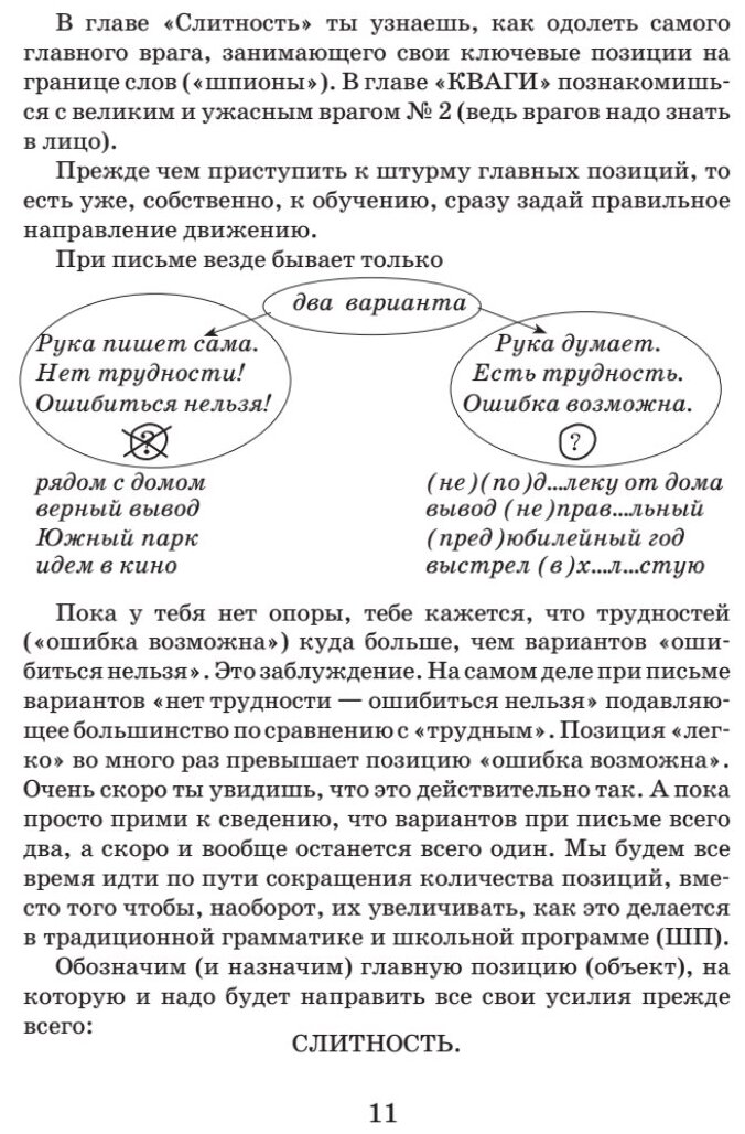 Опорные механизмы, сформулированные автором, надежно гарантируют правильное, грамотное письмо, уверенность в своих знаниях. Книга понравилась. Вспоминаю школьную пору, по предмету "Родной язык" изучали множество правил и исключений, которые достаточно быстро выветрились из головы. Обучение должно быть простым, понятным, приятным и эффективным.