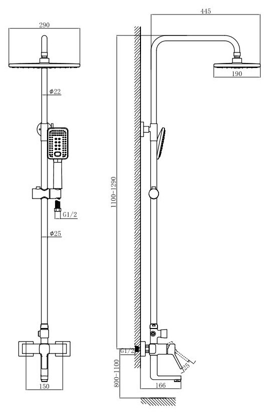 | Размер верхнего душа, мм | 290 |