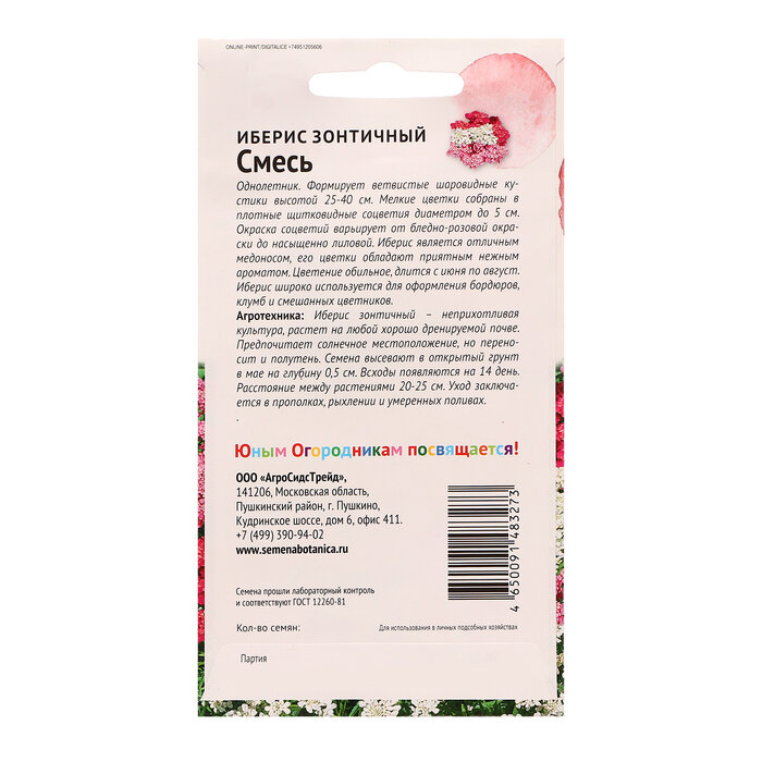 Семена иберис зонтичный смесь дг 01г Без бренда