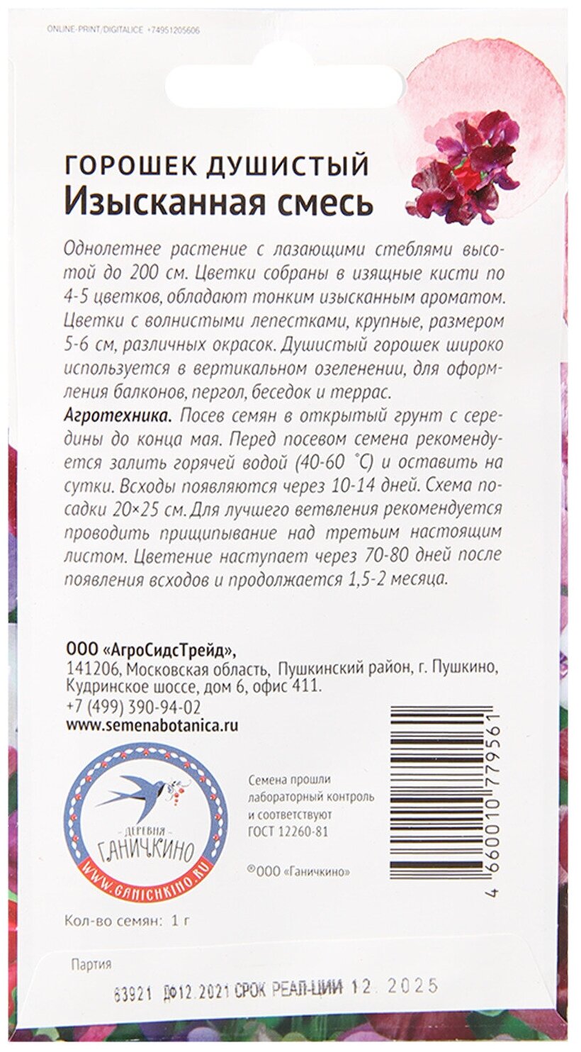 Тип товара: Душистый горошек семена