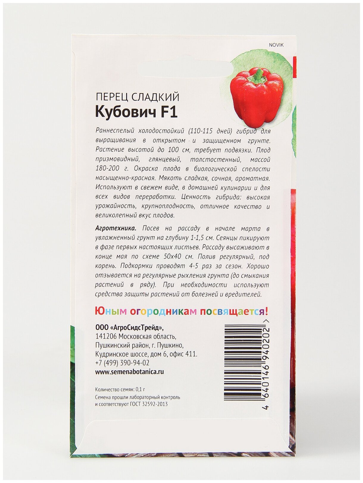 | Комплектация | Семена овощей Перец сладкий красный Кубович 0,1 г - 1 уп |