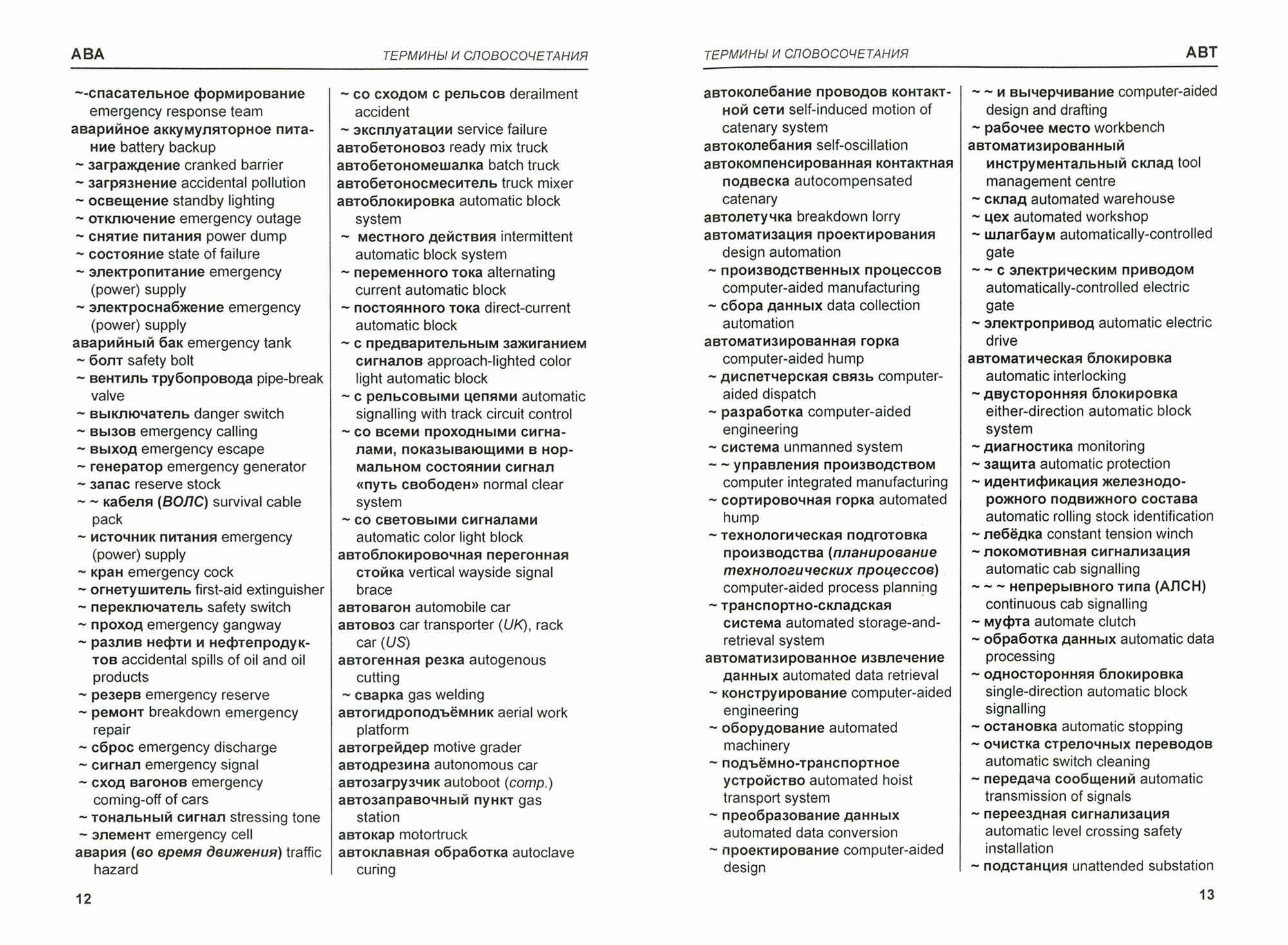 Приведены основные термины и устоявшиеся словосочетания (суммарно около 25 тыс.) в области инфраструктуры железнодорожного транспорта, включая автоматику, телемеханику и связь, вагонное хозяйство, путь и сооружения, станции, строительство и реконструкцию, электрификацию и энергоснабжение, цифровизация, а также в необходимой степени - управление перевозочным процессом, экономику, финансы, охрану окружающей природной среды, правовые и компьютерные термины на русском языке и в переводе на английский язык (без синонимов). В приложении помещен список русских аббревиатур (около 1 тыс.) с их расшифровкой и переводом на английский язык, а также английских единиц измерения и соотношения для перевода английских единиц измерения в метрические и метрических - в английские.