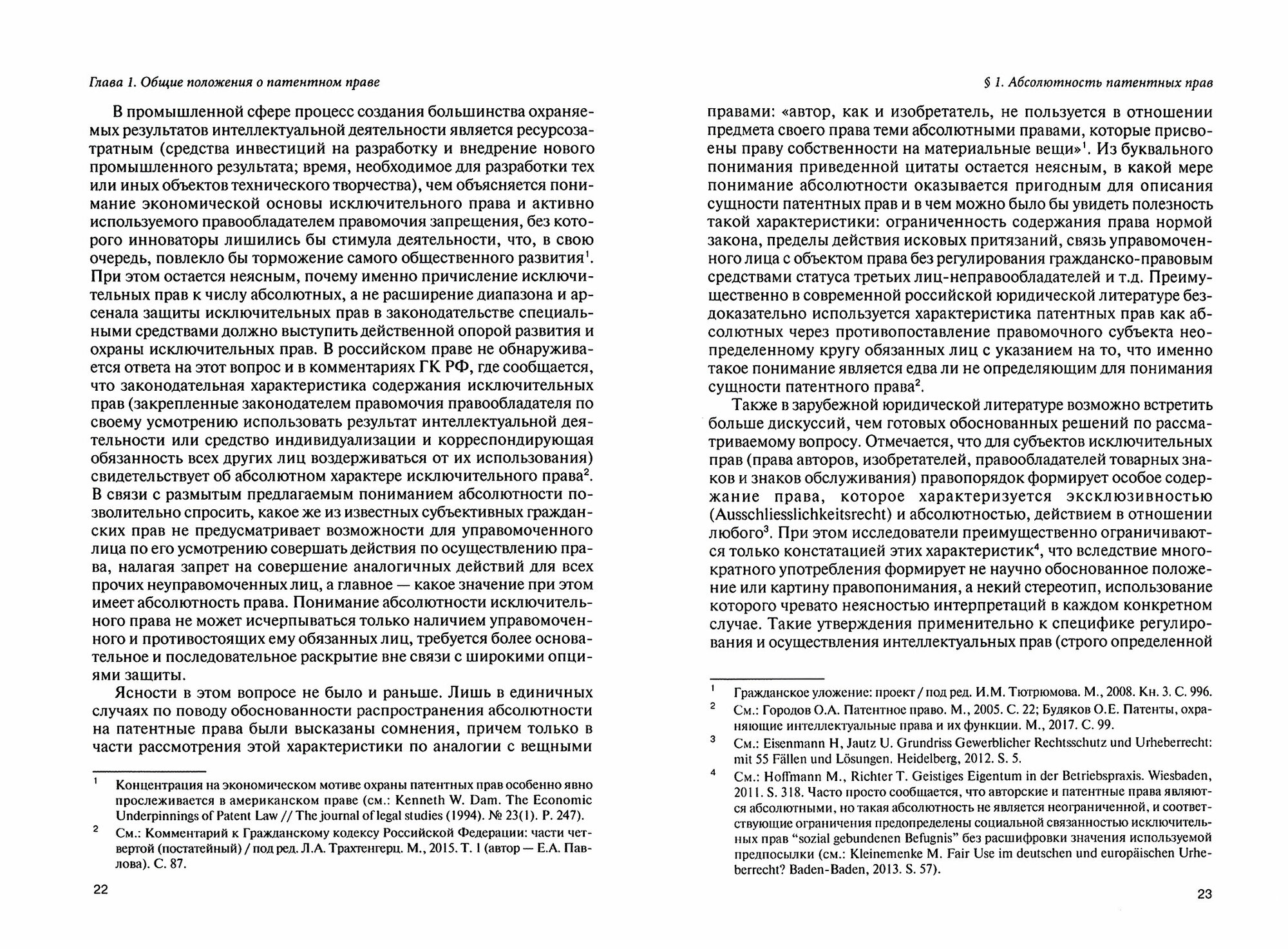 В предлагаемой вниманию читателя книге с использованием методологии сравнительного правоведения освещены актуальные и дискуссионные проблемы реализации патентных правоотношений в национальном и наднациональном праве. Рассмотрены перспективы патентной интеграции в ЕС и ЕАЭС, гармонизации и сближения национальных законодательств о патентном праве. Внимание автора было сосредоточено не столько на различиях подходов отдельных юрисдикций в регулировании принадлежности и оборота объектов промышленной собственности, сколько на общности проблем осуществления и защиты исключительных патентных прав.