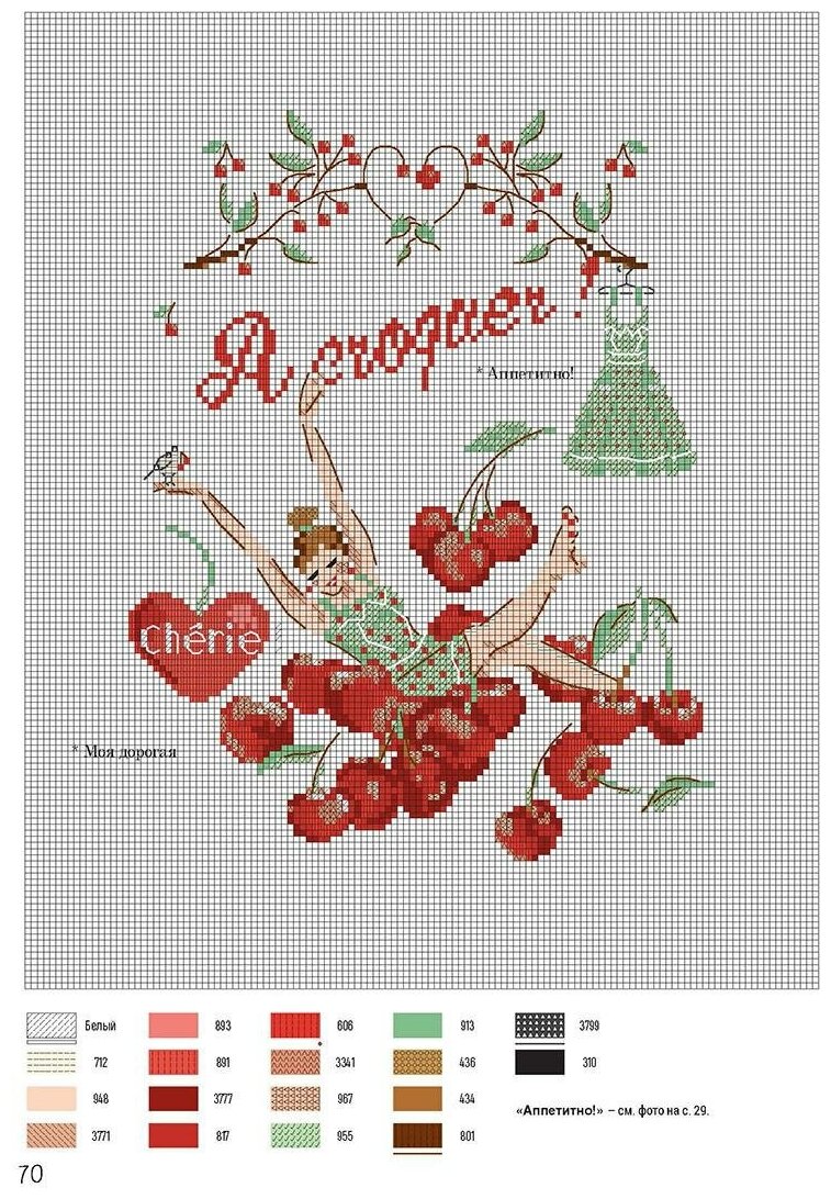 Вышивание от-кутюр! Легендарная книга французской мастерицы Элен ле Берр подарит всем любителям вышивания крестом и ценителям высокой моды множество приятных часов, проведенных за любимым рукоделием. Каждый дизайн в этом издании представляет собой не только законченный модный ансамбль, но и настоящую винтажную открытку с очаровательной героиней в изысканных ностальгических декорациях. Нежные акварельные цвета нарядов гармонично сочетаются в отшивах с тонкими контурными линиями, которыми автор выделяет детали. Оставаясь верной своему необыкновенному стилю вышивания, Элен ле Берр создала принципиально новый формат дизайнов и отшивов, который порадует всех увлеченных мастериц. Каждый проект сопровождается подробной схемой, списками нитей и при необходимости описанием пошива изделия.