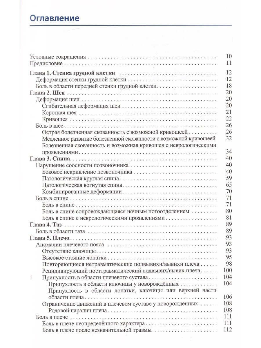 В книге представлены наиболее часто встречающиеся в практике врача ортопедические заболевания детского возраста. Подробно обсуждаются заболевания плечевого и локтевого суставов, а также предплечья, лучезапястного сустава и кисти. Отдельно рассматриваются инфекции костей и суставов, врождённые аномалии развития, деформации грудной клетки, заболевания тазобедренного и коленного суставов, а также патологические изменения голеностопного сустава и стопы. Кроме того, здесь уделено внимание заболеваниям спины и шеи, а также проблемам разновеликости ног и нарушений походки. В издании рассматриваются вопросы хирургических вмешательств, особенности ведения пациента и принципы консервативного лечения.