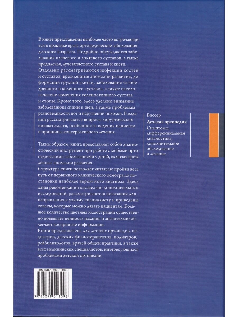 Таким образом, книга представляет собой диагностический инструмент при работе с любыми ортопедическими заболеваниями у детей, включая врождённые аномалии развития, и предназначена для детских ортопедов, педиатров, детских физиотерапевтов, подиатров, реабилитологов, врачей общей практики, а также всех медицинских специалистов, интересующихся проблемами детской ортопедии.