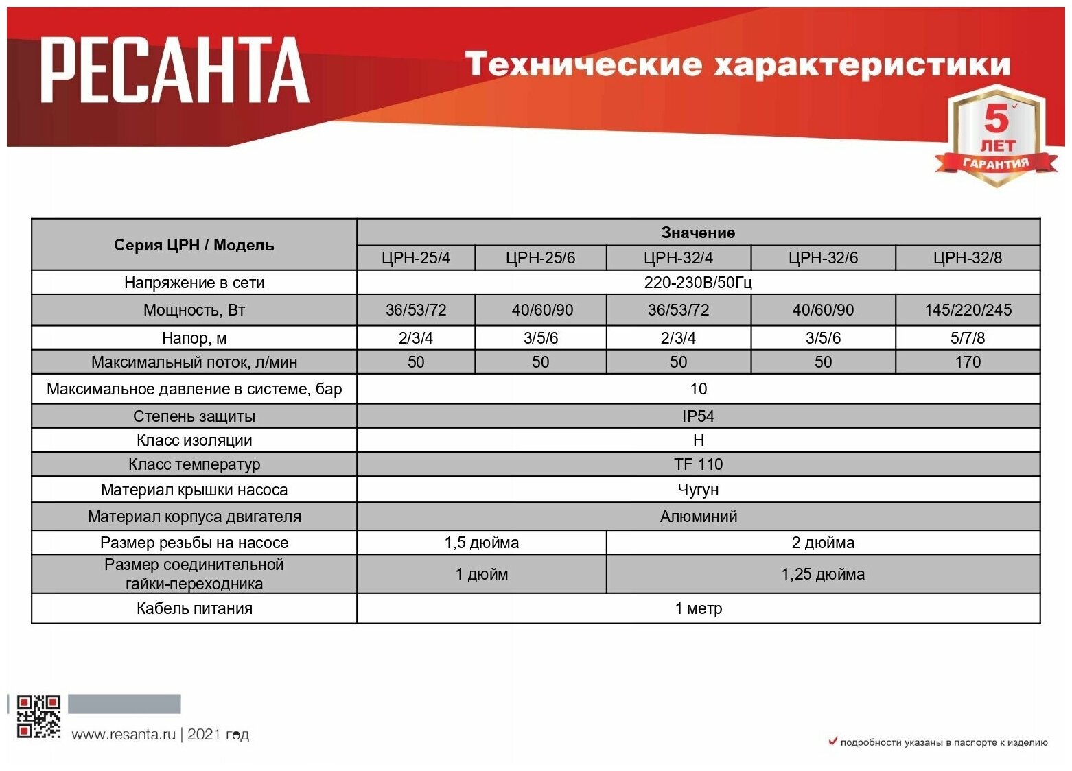 - Размер резьбы на насосе: 1,5 дюйма