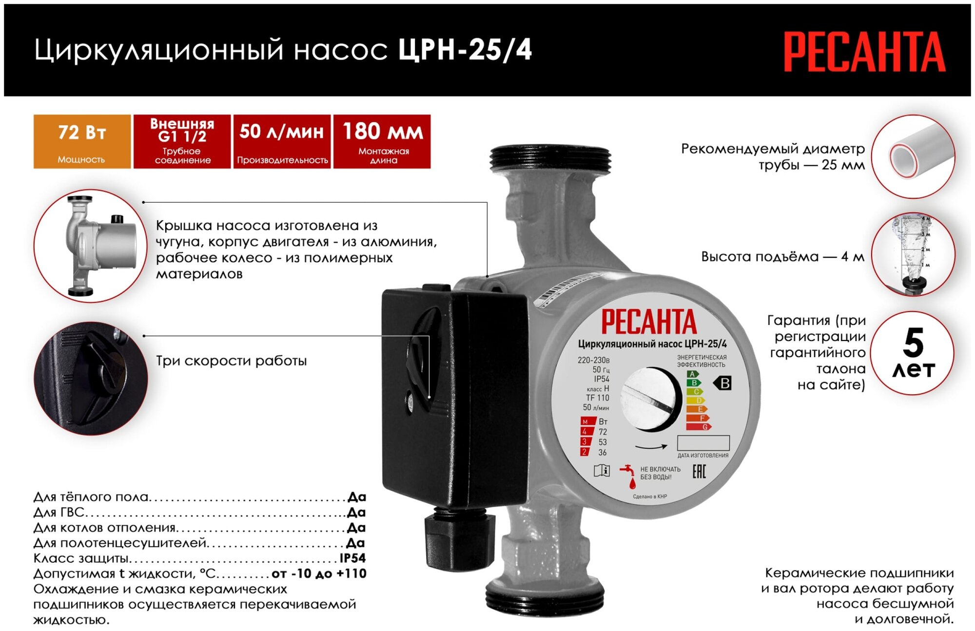 Насос циркуляционный Ресанта ЦРН-25/4 77/7/1